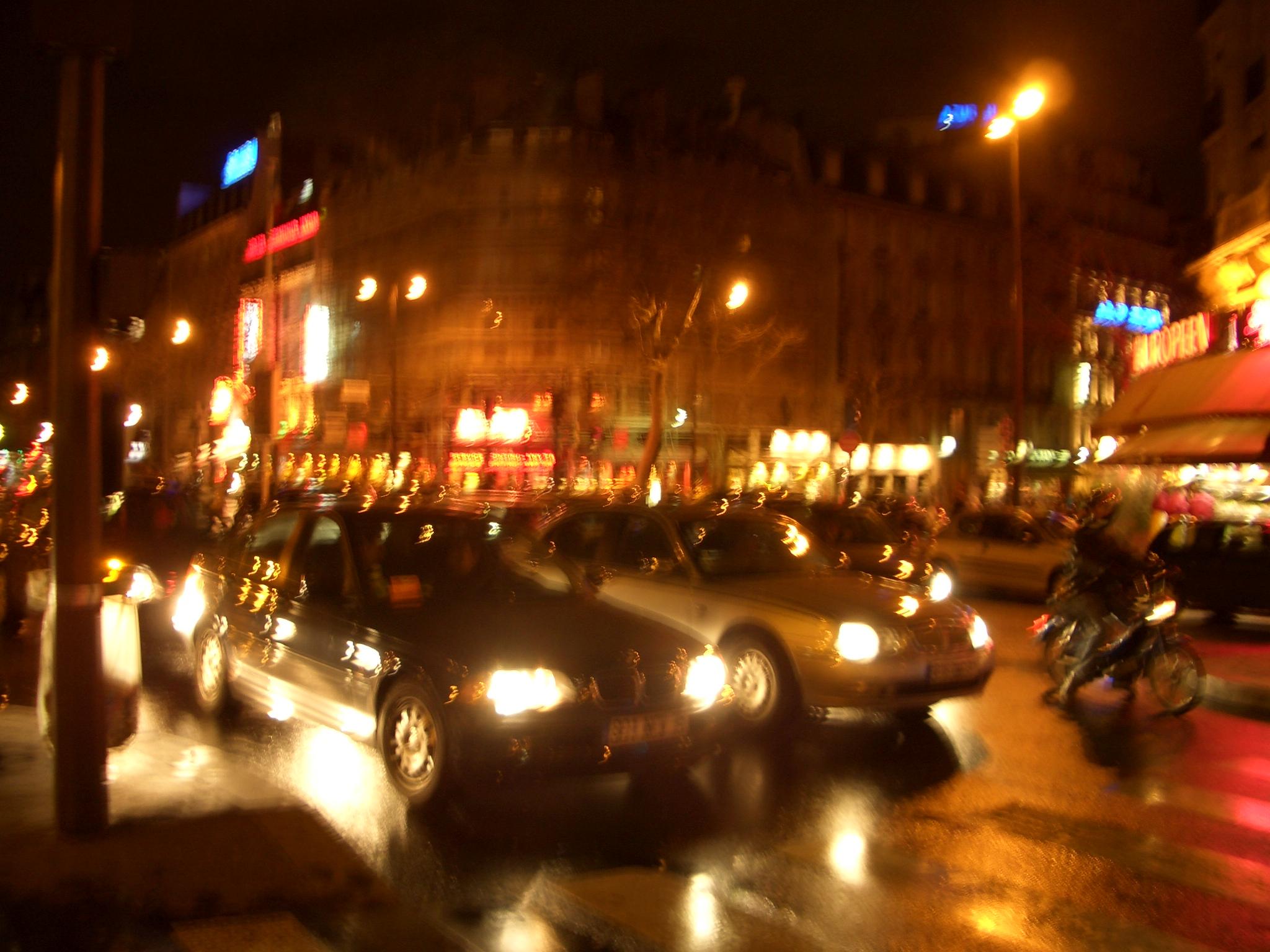 シャルル・ド・ゴール空港からバスに乗り、やっとパリ市内に到着しました!もう夜20時を過ぎているので真っ暗ですが、街の大通りは車で賑わい、建物や街灯のキラキラ明かりが出迎えてくれました(^^)/