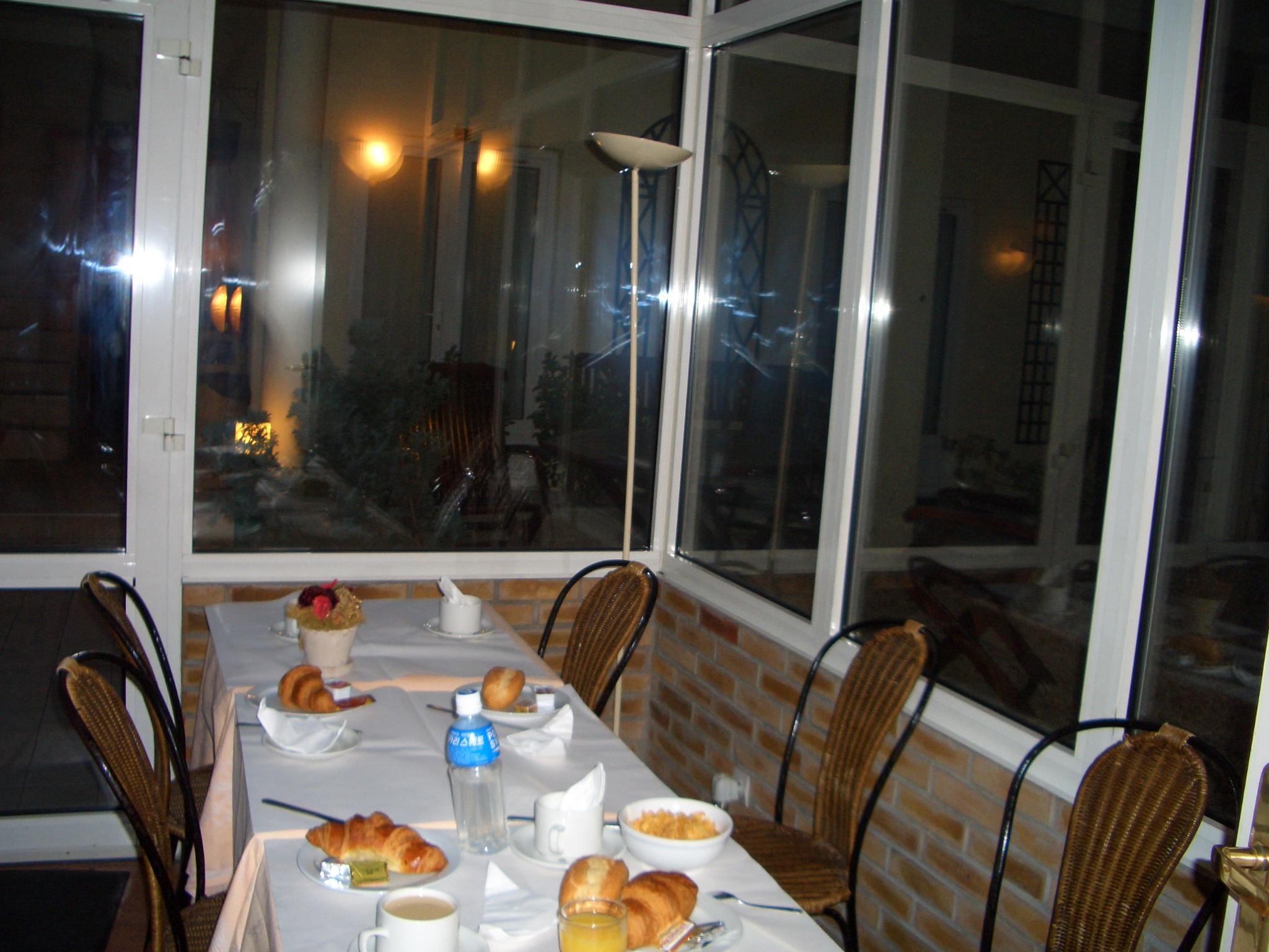 3人の友も起きたので、みんな揃っての朝食です♪これは朝7時くらいの様子ですが、パリの冬空はまだ暗くて寝坊気味のようです。