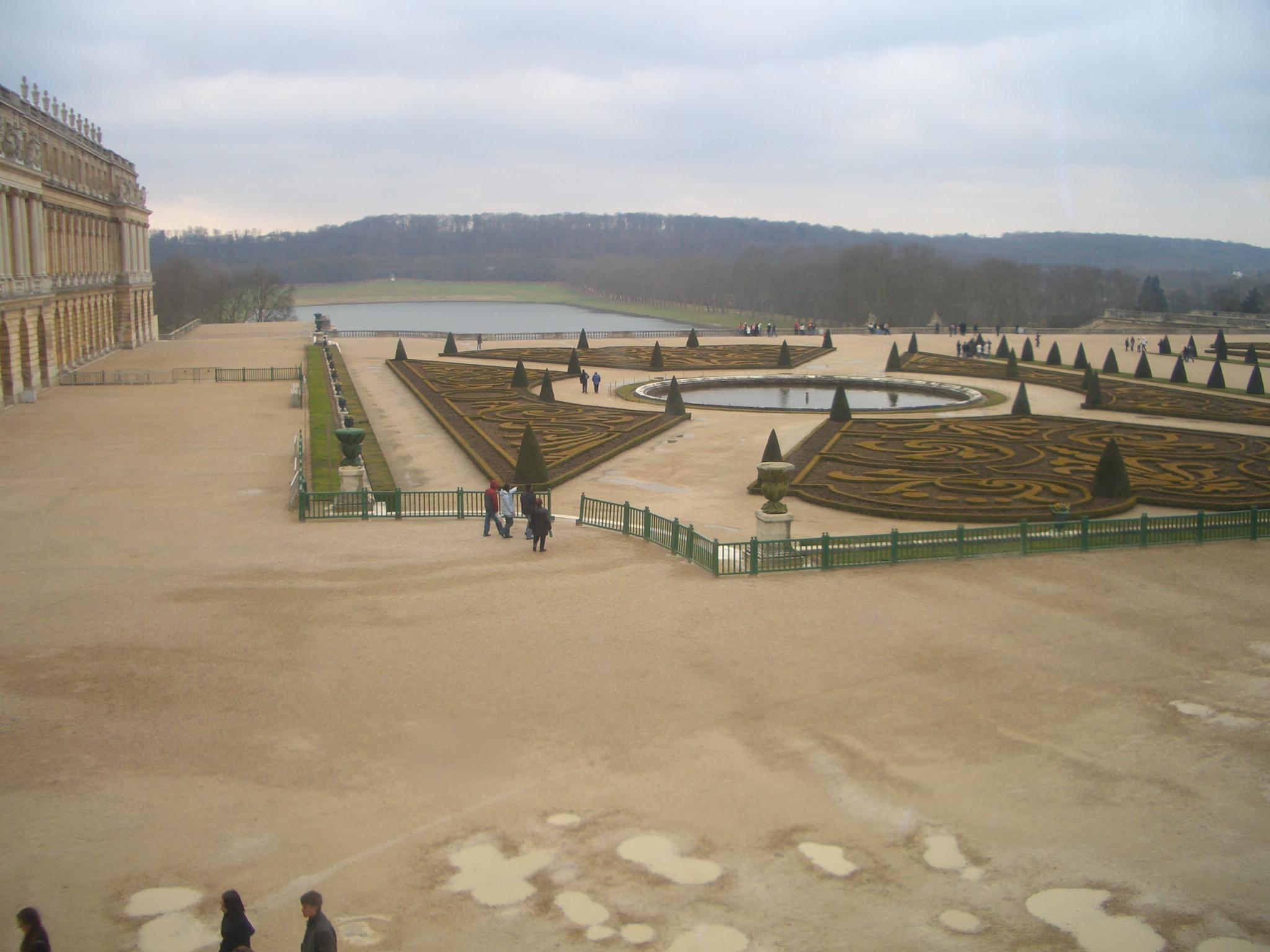 宮殿の外に出て庭園を眺めます。広ーい!そして幾何学模様の植木は芸術ですね。素晴らしいですね。