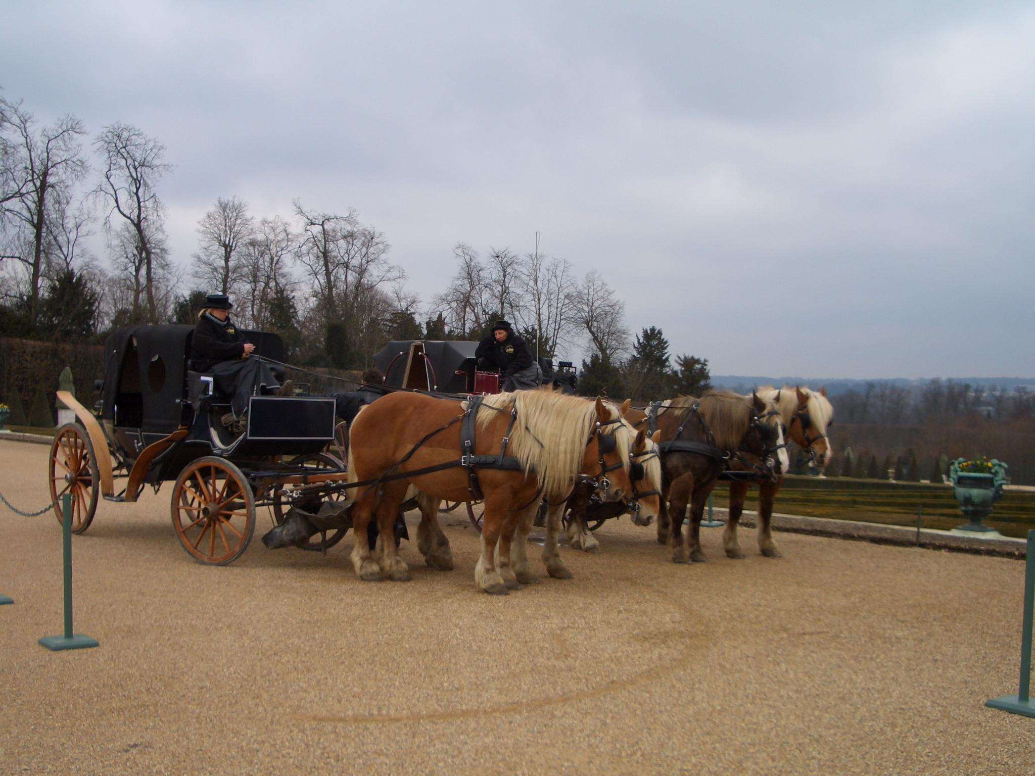 営業中のお馬さんもいます。観光客を乗せる馬車ですね。