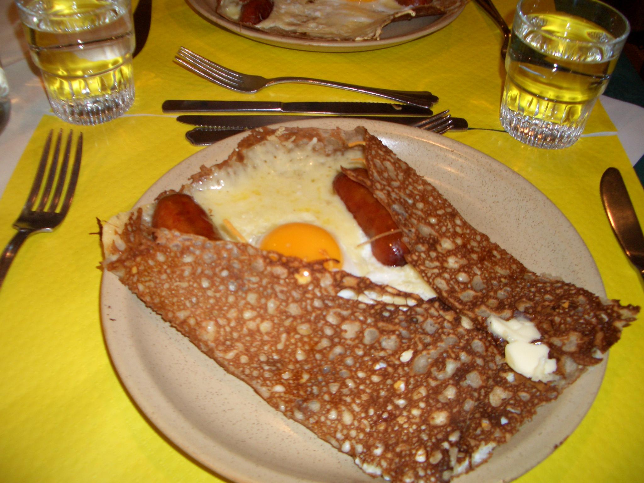 午前中のベルサイユ宮殿の観光を終え、そろそろランチの時間になったので、宮殿近くにあったクレープのお店に入ろうということになりました。地元の人も食べに来ているようです。店員の人おすすめで一番人気のクレープランチセットにしました。