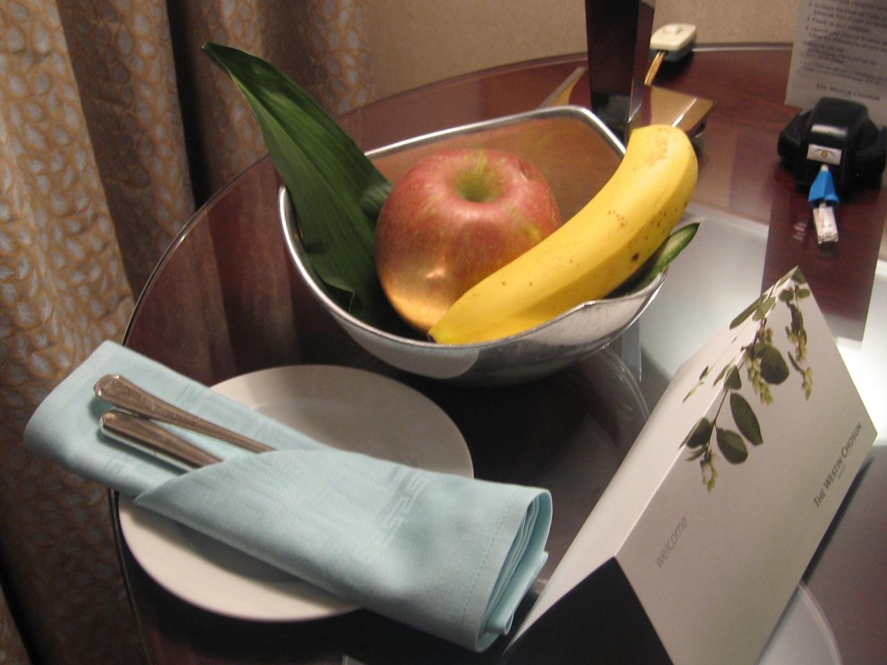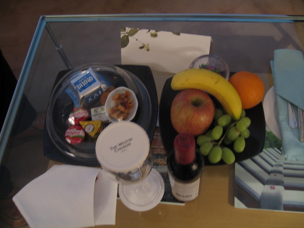 テーブルにはウェルカムフルーツ、ワイン、おつまみが置いてありました。