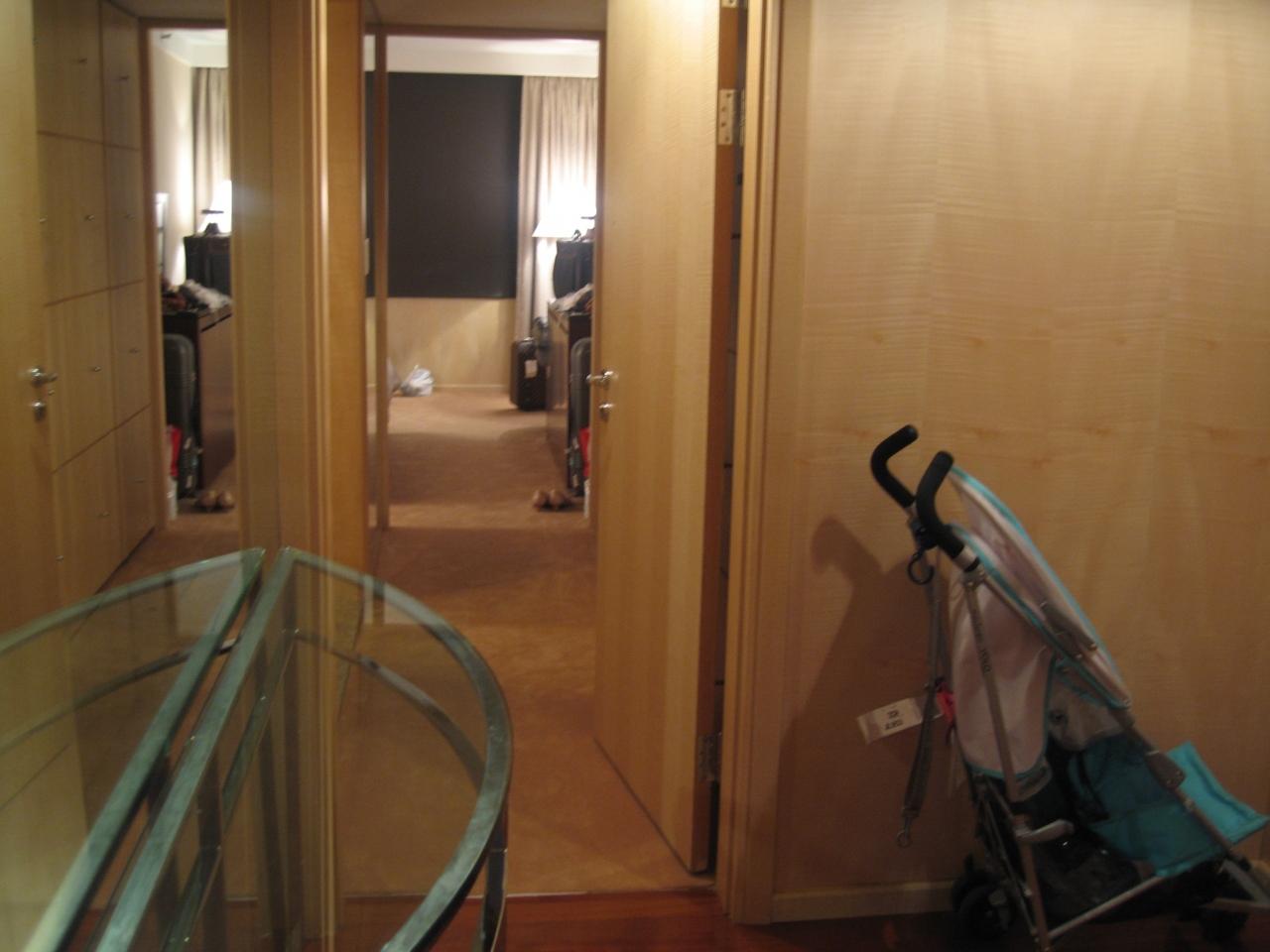 ドアを中心に左右にお部屋が分かれているタイプです(京都のハイアットのDXコーナールームと同じような間取り) -
