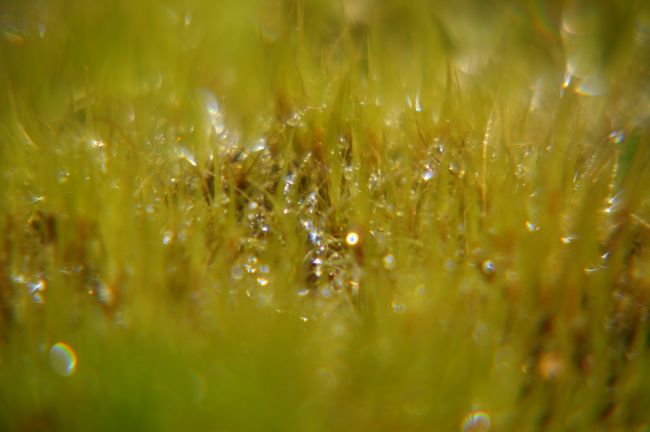太陽の光が射すと、水滴がキラキラと光ってキレイでした。 -