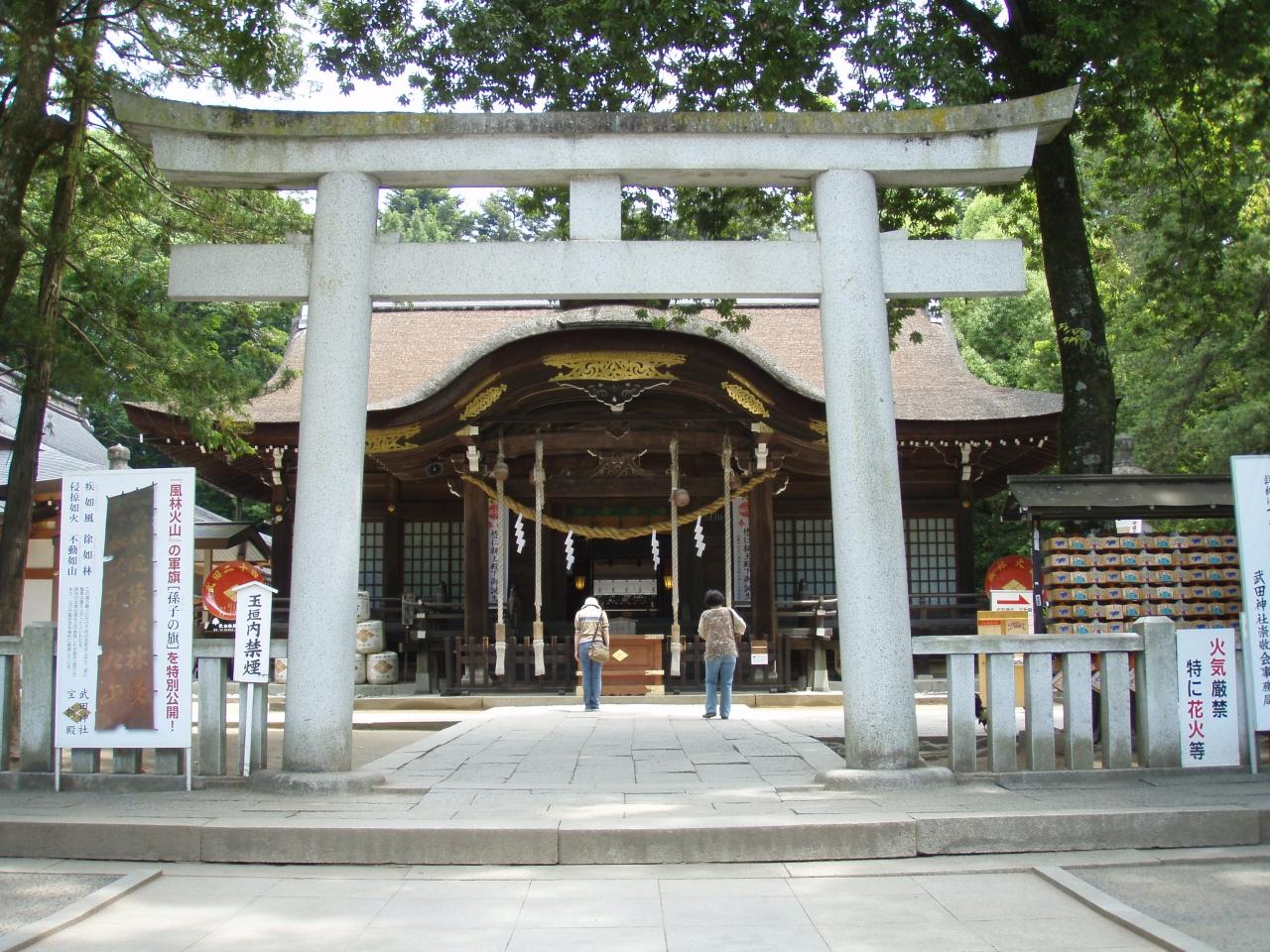 武田神社拝殿です。拝殿に向かう参道で、柔道の塚田真紀さん(茨城県下妻市の星だそうです)を目撃しました。(証拠写真はありませんが)
