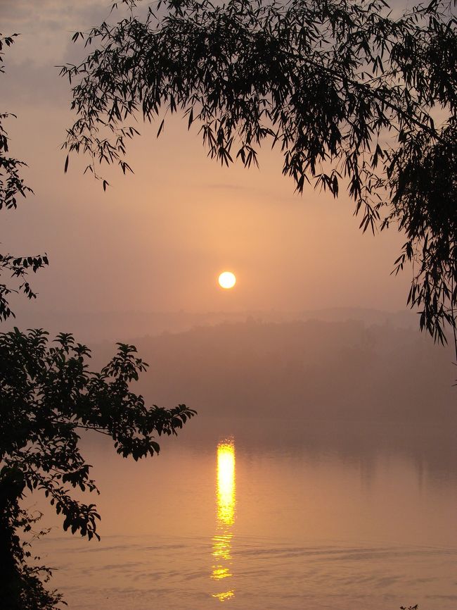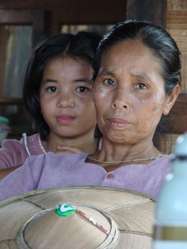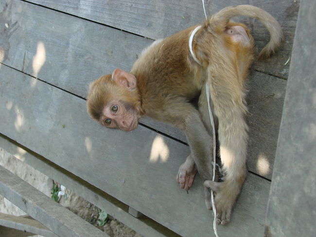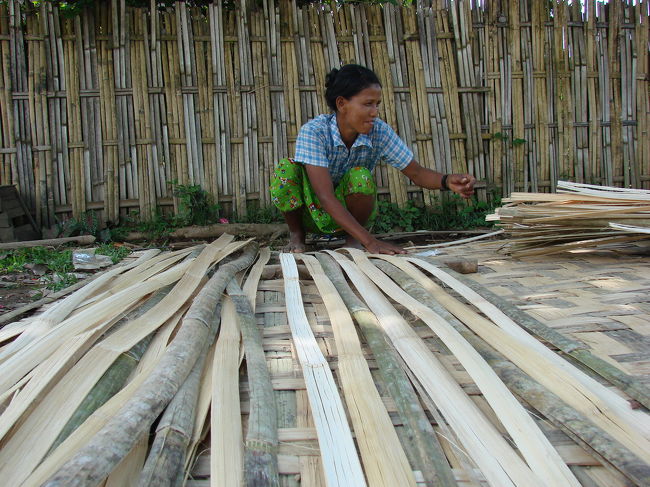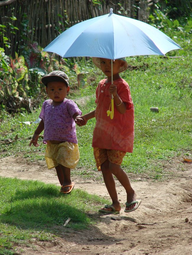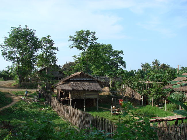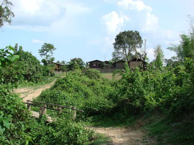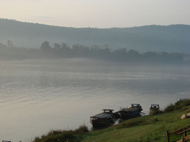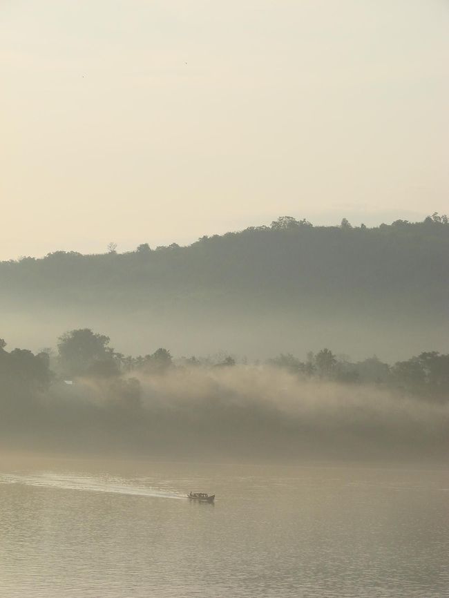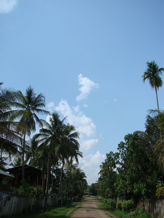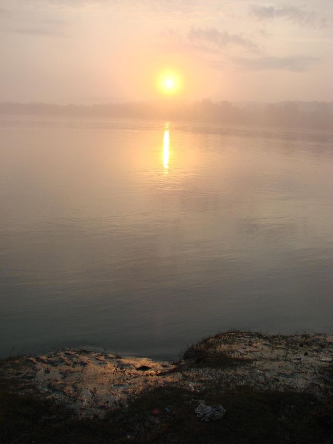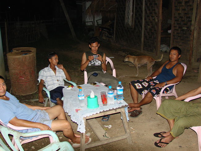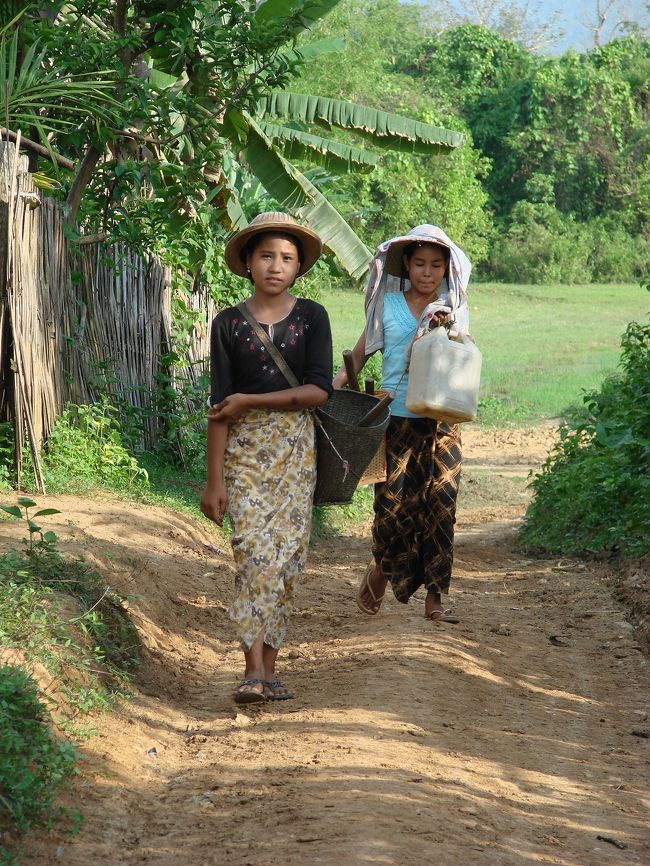 ミッチーナの町から南へ20km位いった所から次の町(村)シンボーへ行く舟が毎日朝11時に出発する.宿を出る前に近くの屋台で麺をすすり,パンと水を買い込みバイタクで船着場へむかっった.小さな舟が岸辺にロープでつながれている少し早めに来たが席は殆んどうまっていた.何とか席を確保して周りを見まわすと乗客達がジッと私を見つめている.かるく手を上げて"ミンガラバー"と声を掛けると皆口々に返事をかえしにこやかな顔つきにかわった.舟が出て暫くすると喉がかわいたので水をのむ,他の人達はコップで河の茶色い水をのんでいた,子供や赤ん坊も....途中で一度昼食の為30分ほど岸に留まり村 で食事をする飯屋の前に小猿が紐でつながれていたが人慣れしていて客にすり寄ったりしていた.シンボーの町へ着くまでに何回か途中の村で乗り降りする人達が沢山の荷物を持って乗船していた,買出しに行っていたのだろう.辺境の生活,不便な事が多いと思うがすむ人達には我が家の在る安住の地なのだろう.