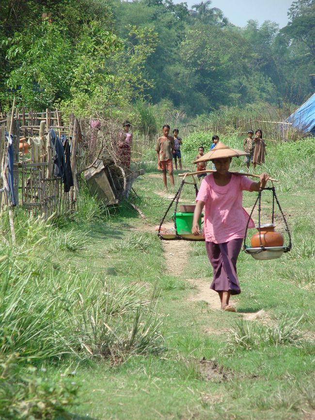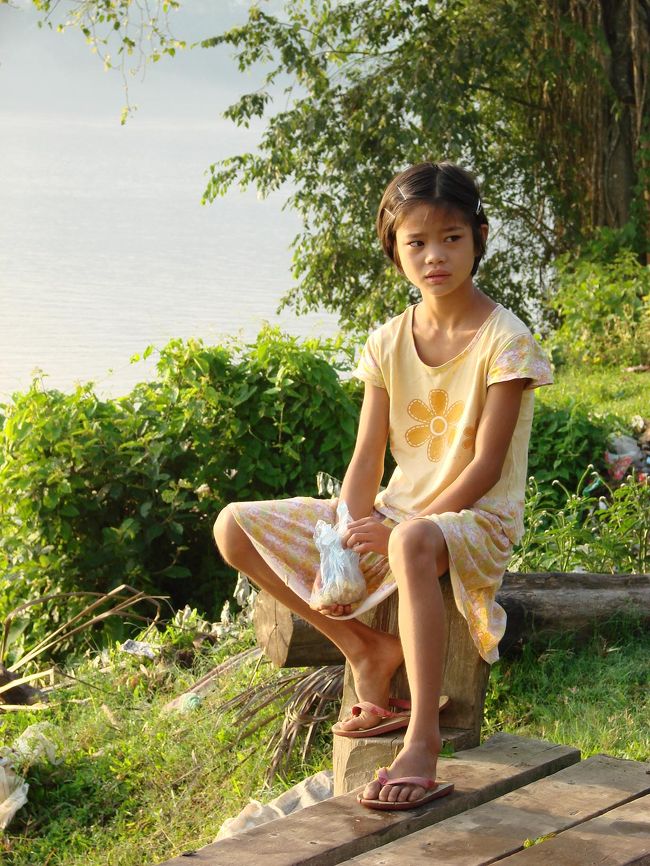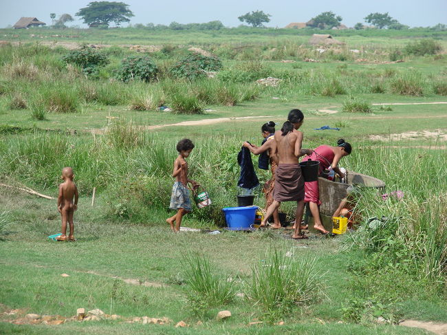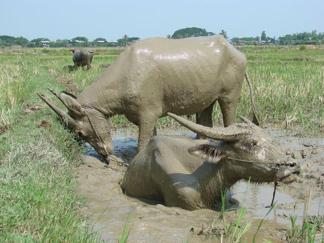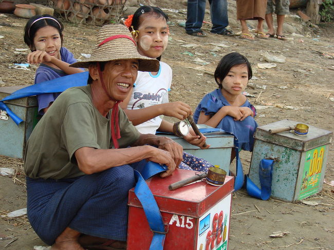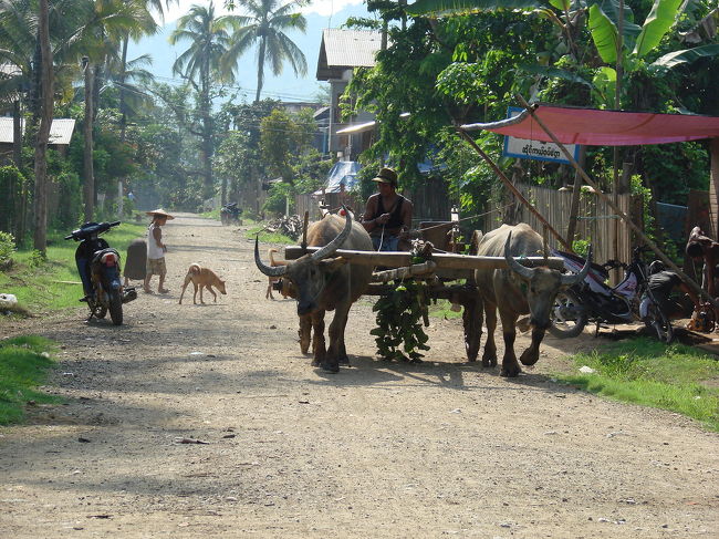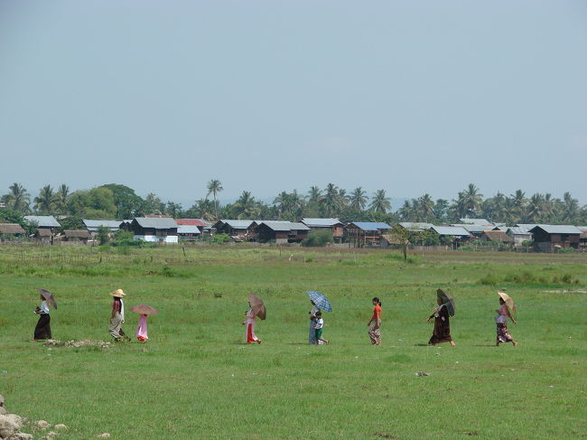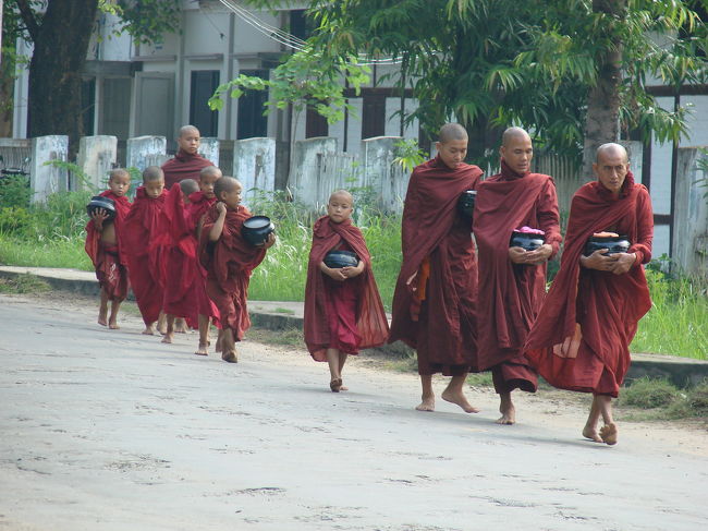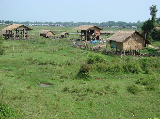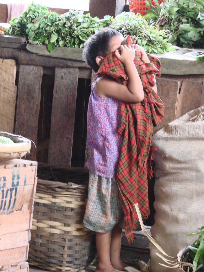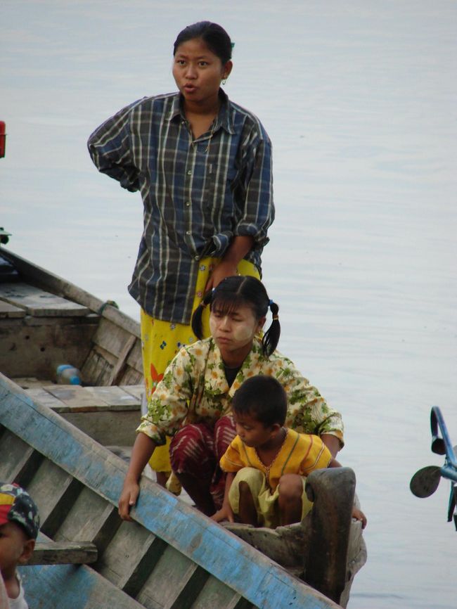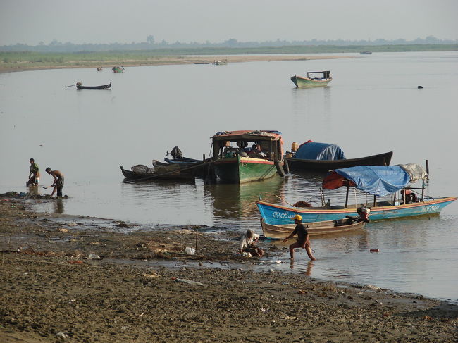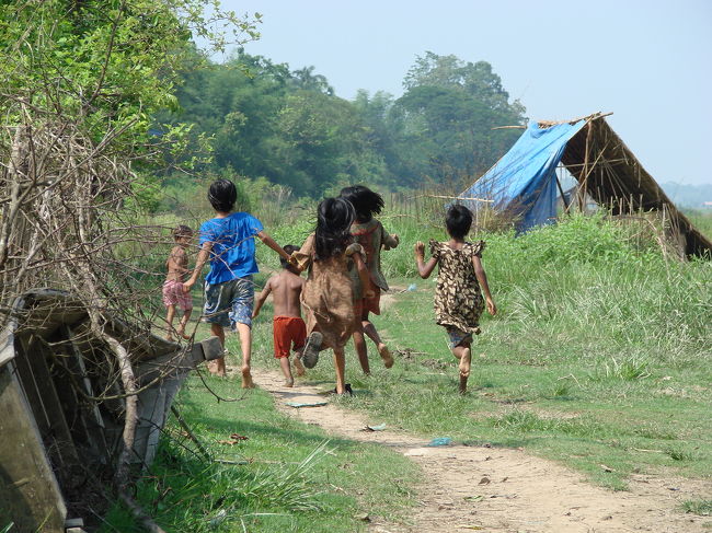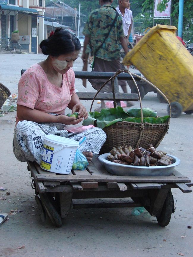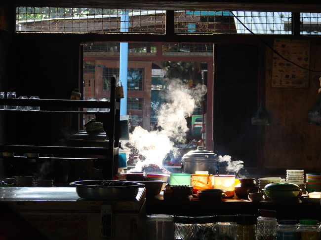 昨夜イミグレーションの人から舟の出発は11時ときいていたので午前中町をぶらつき少し早めに河岸の船着場へ行くと5-6隻くらい舟が接岸して居たので近くの人にバモ!バモ! と行き先の名前を言うと近くの舟を指指しバモ!と教えてくれた.舟にはすでに坊さんが一人のって居てひさしの下で何をするでもなくただ出発をまっていた.熱い日差しの中ポツリ,ポツリ,とバモ方面へ行く人たちが乗船して来た.河の流れはゆるやかで途中一度浅瀬に乗り上げ20分くらいかかって再び流れにのりバモへと向かう.途中スコールにあいひさしに被せてあったシートを広げ雨避けにする.夕方バモに着き宿に荷物を置きさっそく町中をぶらついた.町には2泊したので翌日は町中よりも郊外の方へ足をのばし人々の生活を見てまわった.