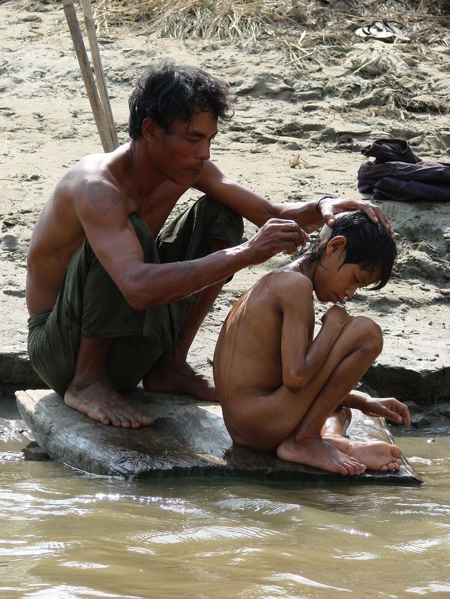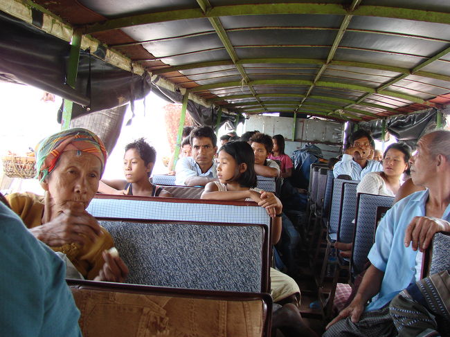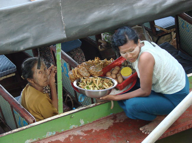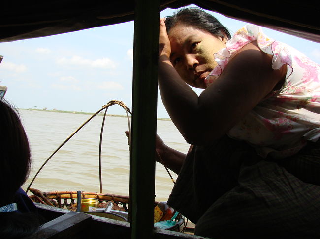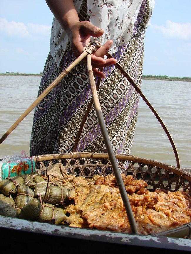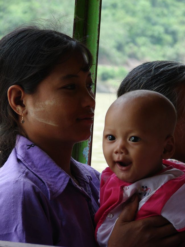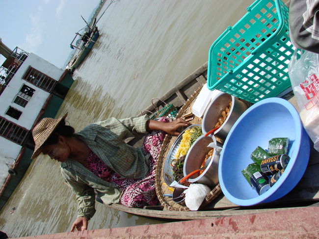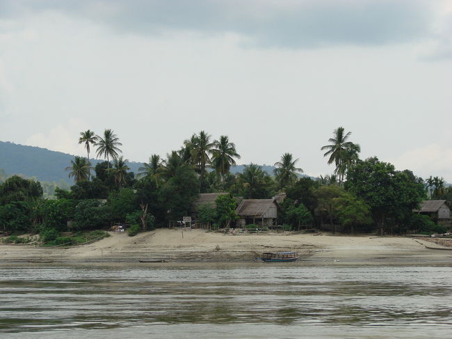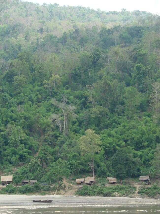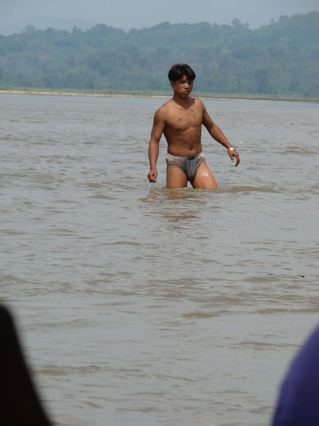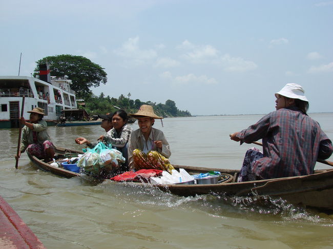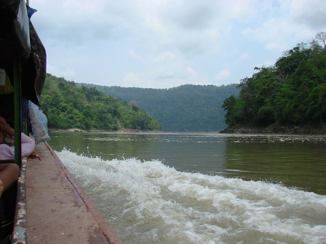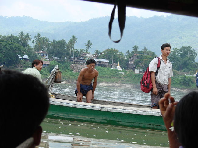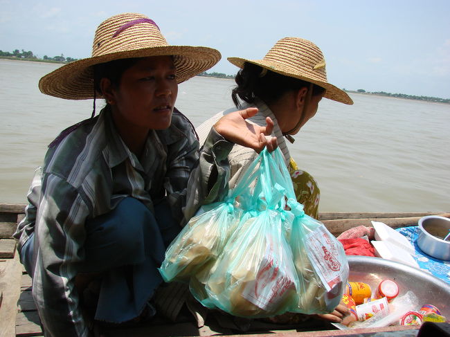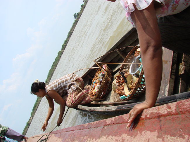 朝9時に舟が出ると言うので用心の為何時もの様に少し早めに船着場へ行く,舟の周りには2-3人の物売りが籠を抱えていったり来たりしていた.出発して暫くすると又浅瀬に乗り上げてしまった,けっこう河幅は有るがかなり浅い.途中から乗船して来る人も有り昼頃になると小舟が寄って来て食べ物をしきりにすすめる.河幅は狭くなり周りの景色がせまって来る.午後3時頃にカタの町が見えて来た今日の終着の町だ,此処にもニ泊する予定で居る.