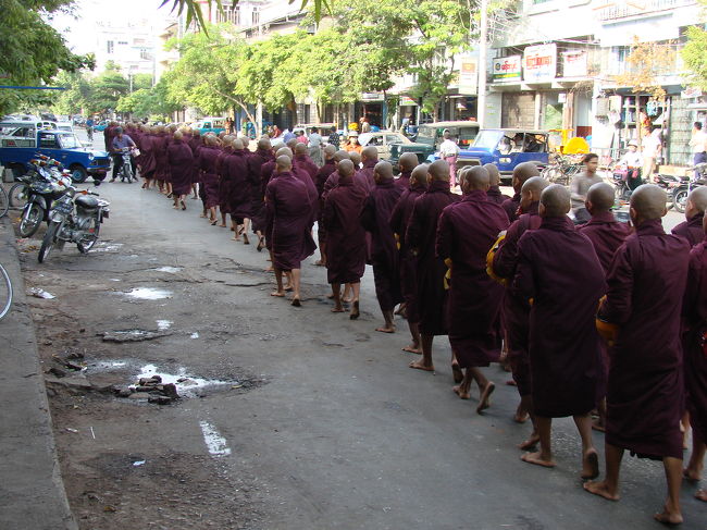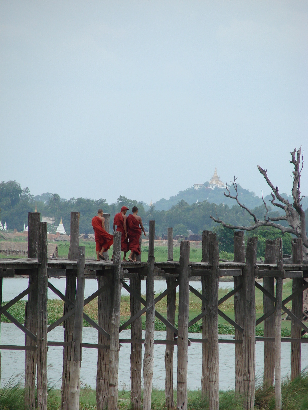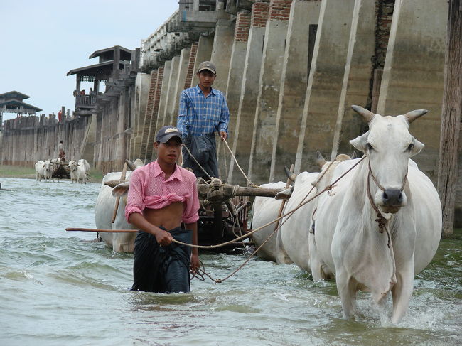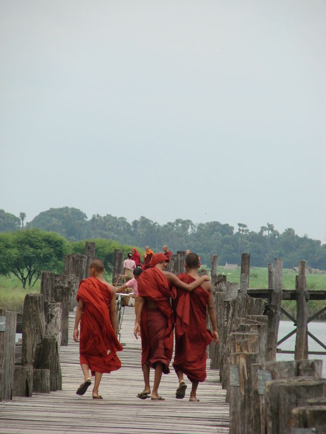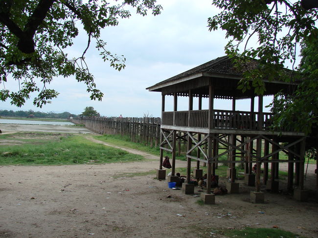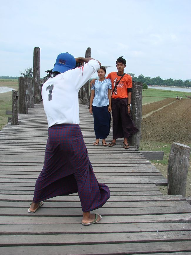 マンダレイへ着き同じ宿へ行き今度は7ドルの大きな部屋にした.エアコン,バス,トイレ,冷蔵庫付,きで大きなダブルベッドだから文句は言いません.日にちがあまったので町をぶらつきマンダレイから南へ7km位いった所に在るアマラプラへ行ってみた此処は大きな池が在りそこにチーク材で造った長い橋が架かっている.今はまだ本格的雨季に入る前なので水位が低く半分ほどは地面に成っていた.