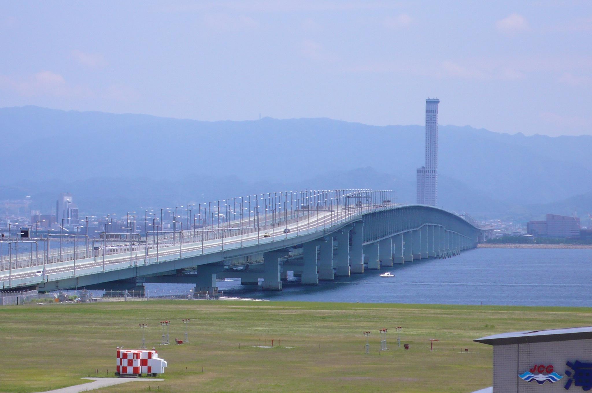 さっき渡って来た、スカイゲートブリッジです。道路、鉄道併用のトラス橋としては世界最長らしいです。