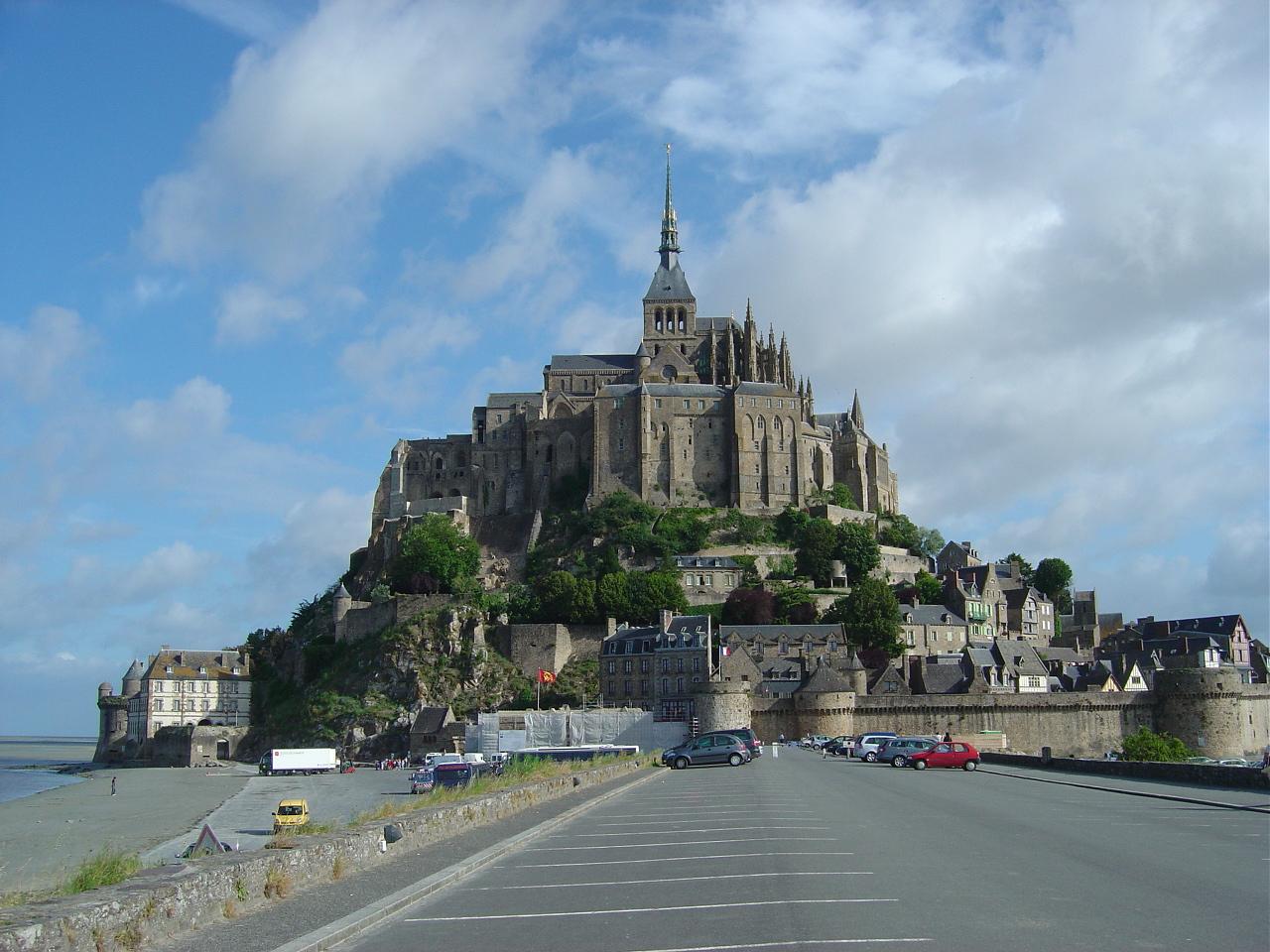 バスに揺られること1時間30分でモンサンミッシェルに到着。車窓からは牛や羊達を眺めたり、かわいい家や風車を見たり、結構楽しめました。