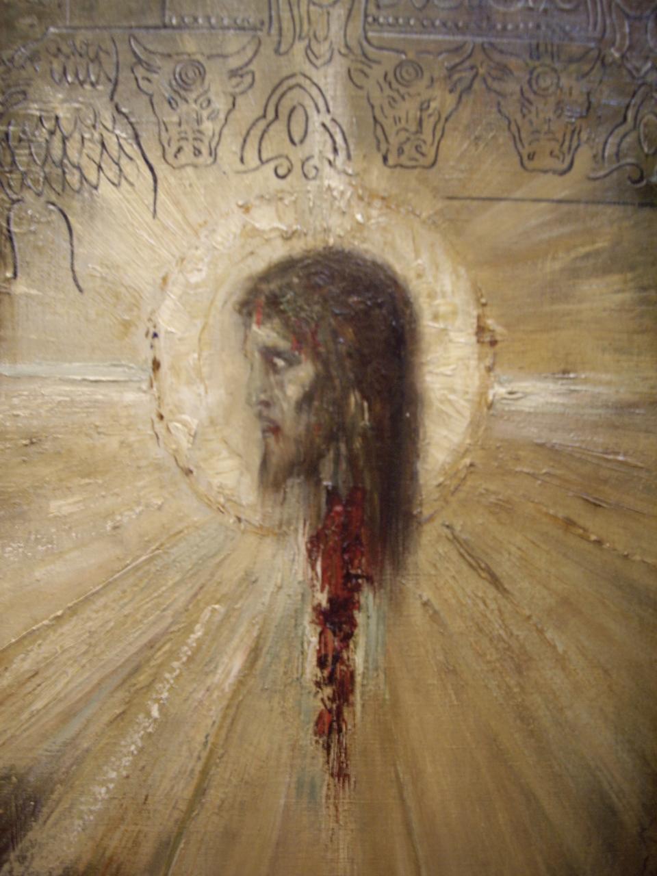 挑むように睨みつける若いサロメに、対峙するように浮かぶ首は、先を阻む大きな壁のように見えます。