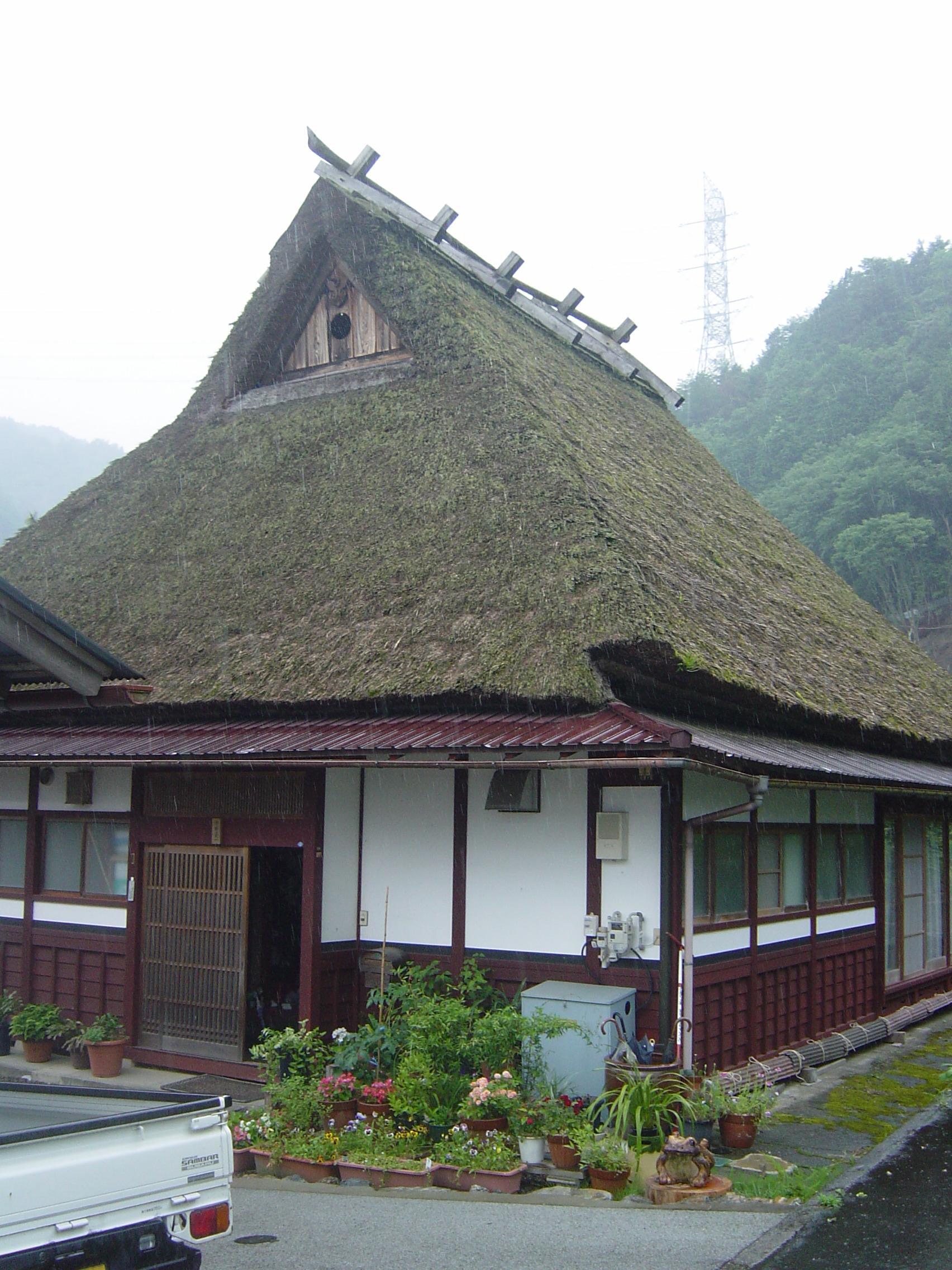 行く道中にもかやぶきの建物がちょこちょこと残っている。