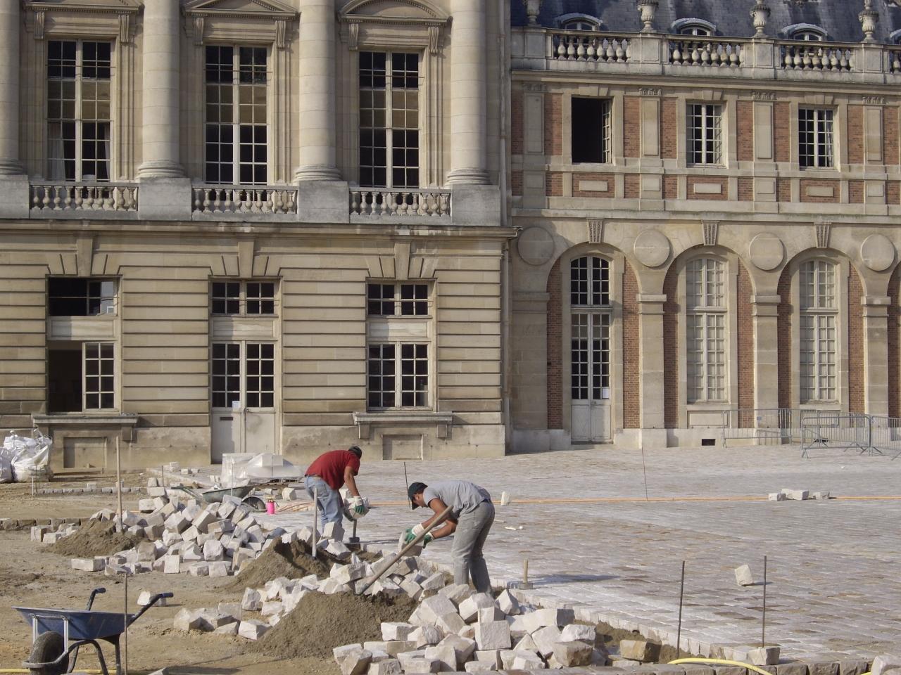 イメージ的には、ヴェルサイユ宮殿の床は、モザイクに敷きつめられた大理石だったんだけどな。 -