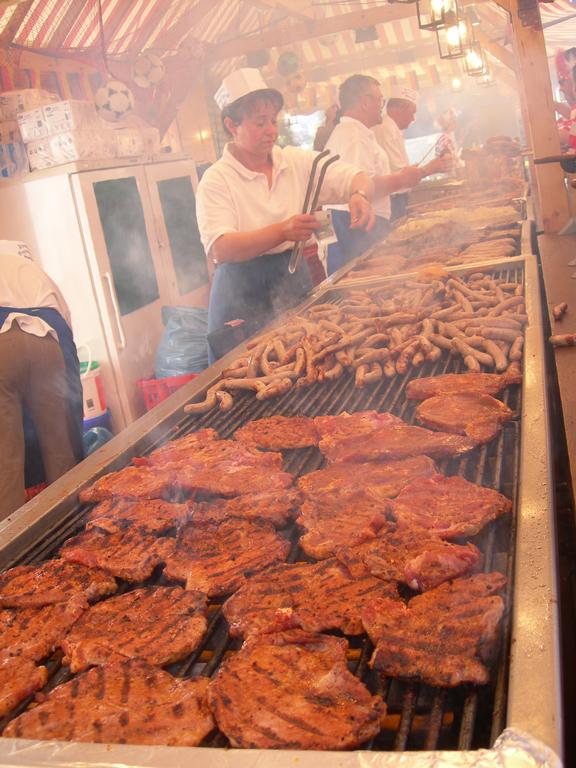 夜ご飯を食べに町の中心、教会前広場まで出ると、そこは試合を明日に控えたサポーター達の渦。
