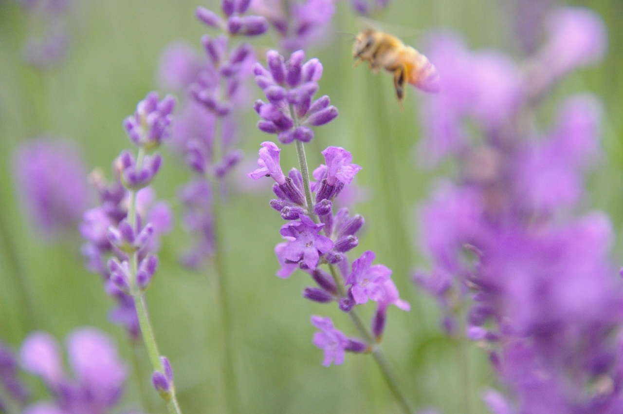 蜜蜂とラベンダー、花の季節らしい写真ですね。