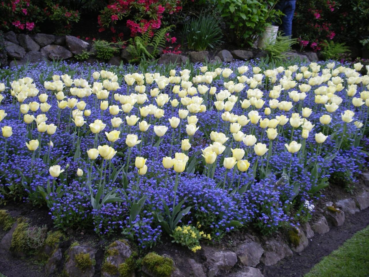 木も花もお天気がいいのできれいです、チュ−リップが多かったですバラのシ−ズンには早かったです