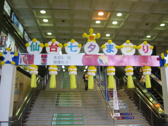 JR仙台駅構内には吹流しの飾り付けがされたと