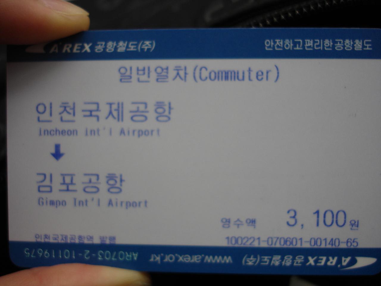 仁川空港から宿のある鐘路3街まではバスに乗る人が多いと思うのですが、韓国語が殆どできない私はちゃんとたどり着けるか不安なので、3月にできた仁川空港⇔金浦空港を結ぶ空港鉄道A'REXに乗ってみました。3100ウォン。