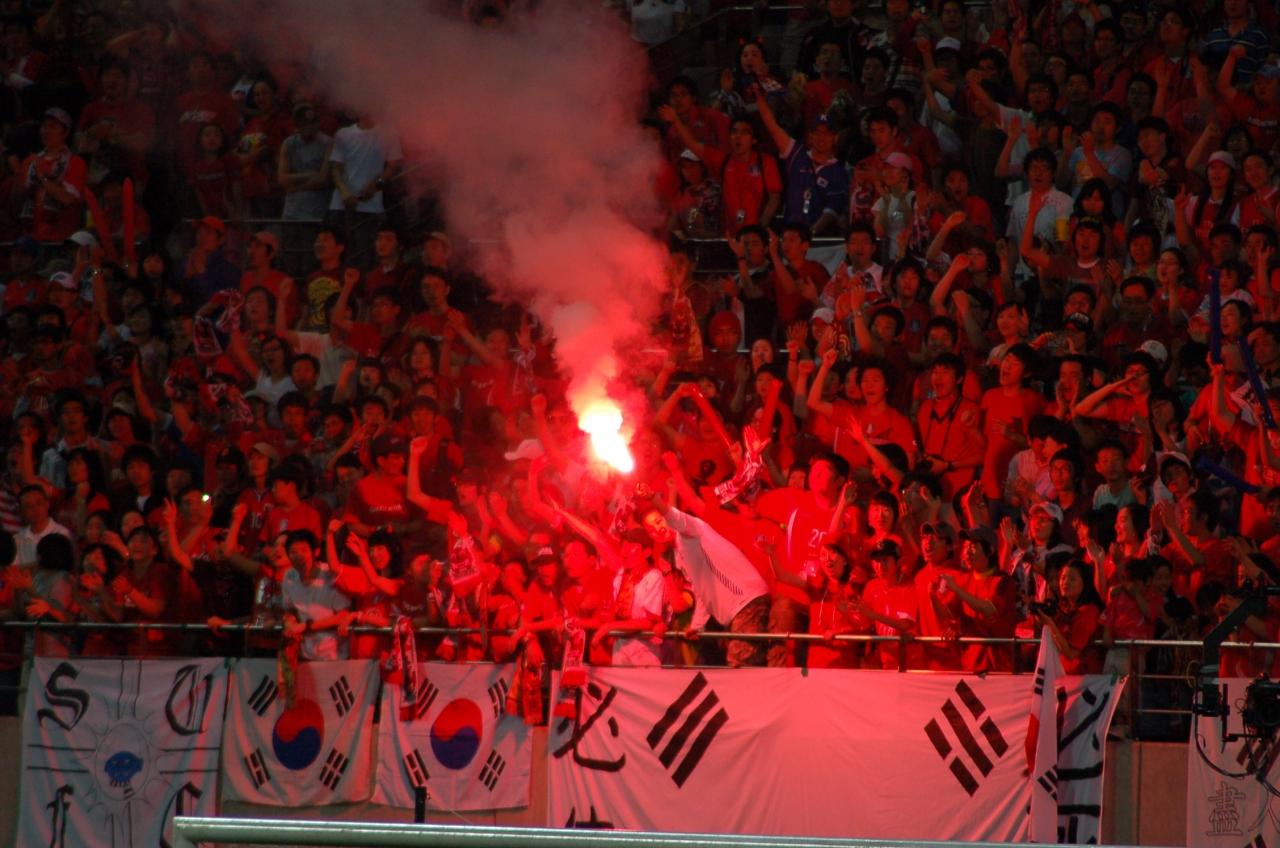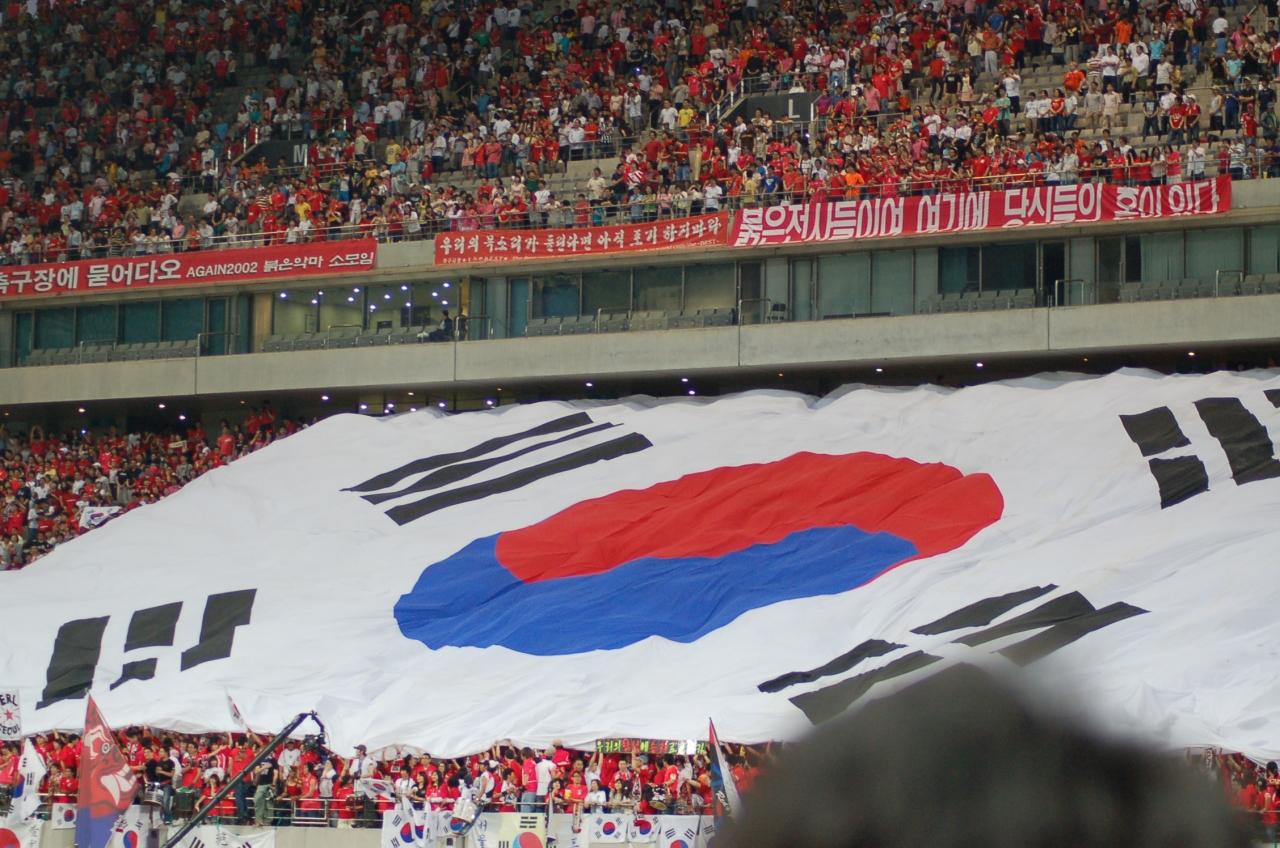 大きい太極旗が広げられるのは圧巻です。 -