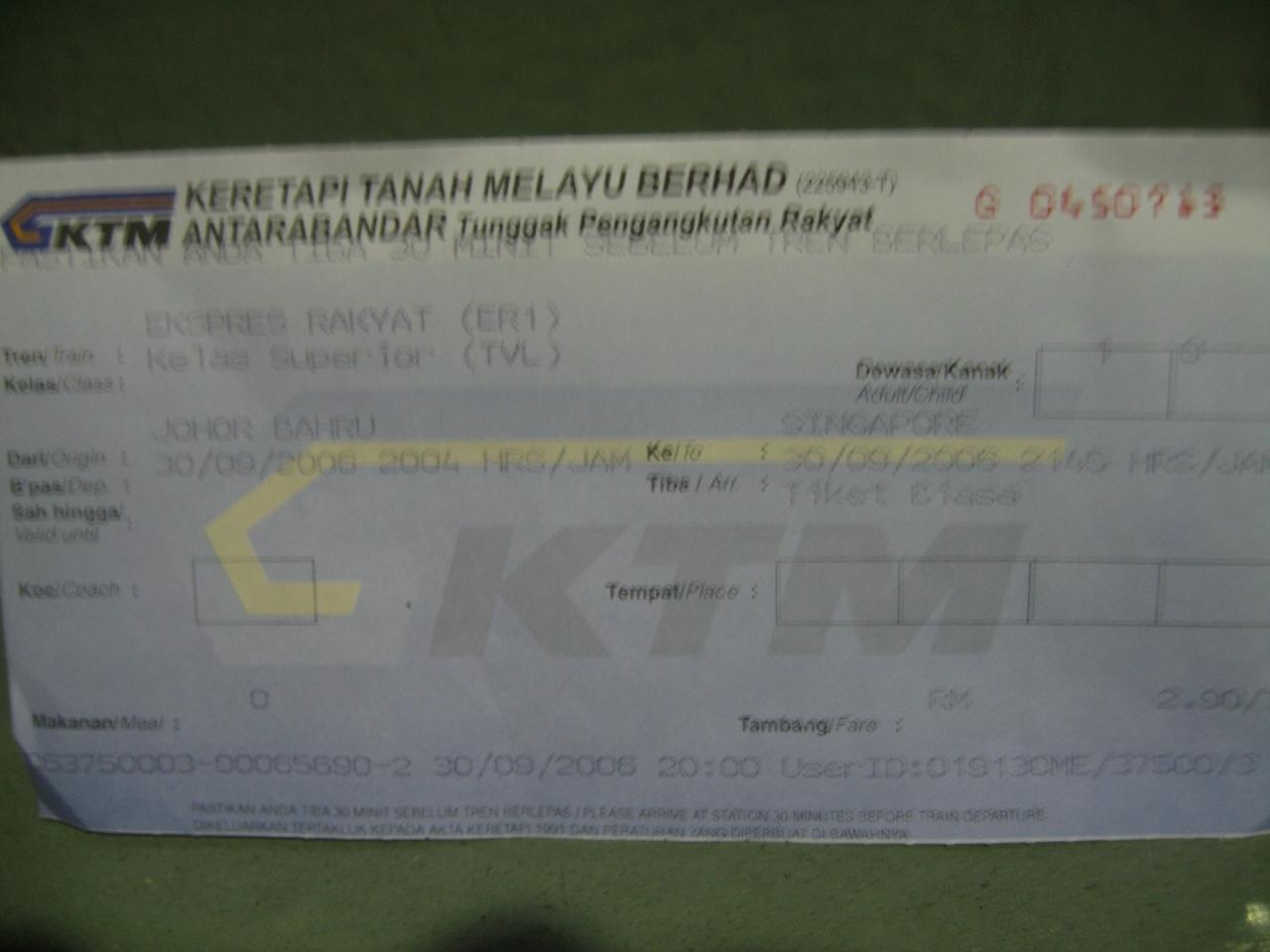 マレー鉄道乗車券