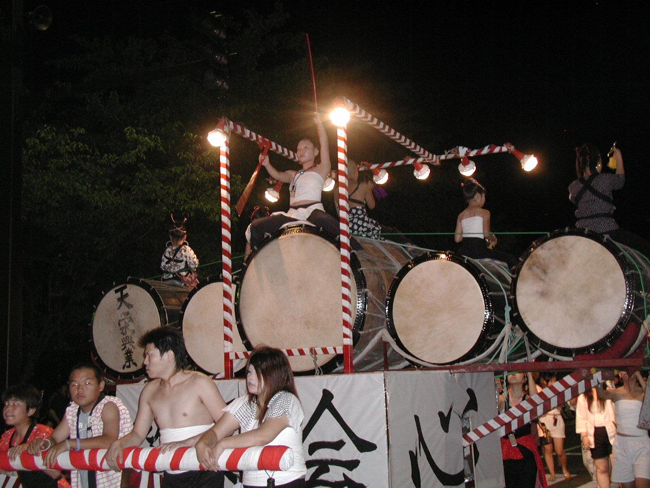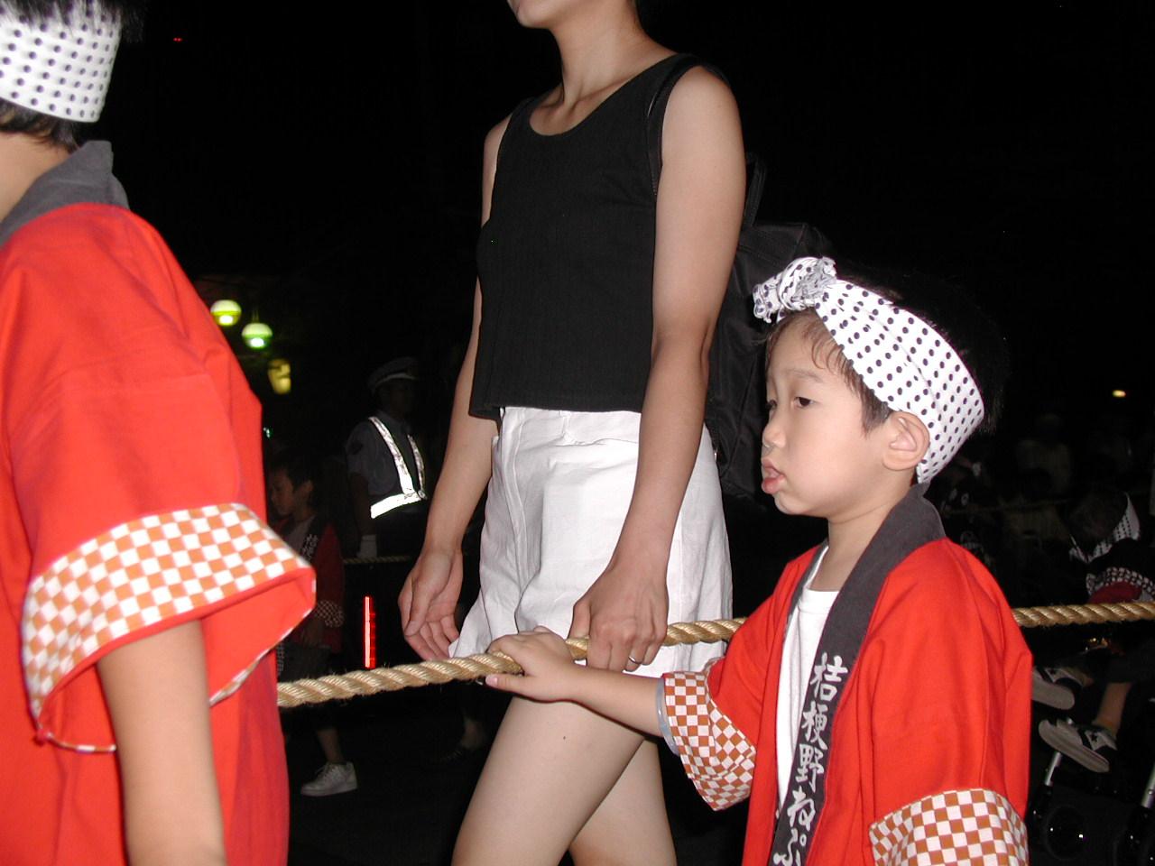 作戦は成功で、祭りが始まる時間に交通規制で車を止め、警備の警察が車道のここまででても良いと指示してくれ、まんまと最前列に(笑)