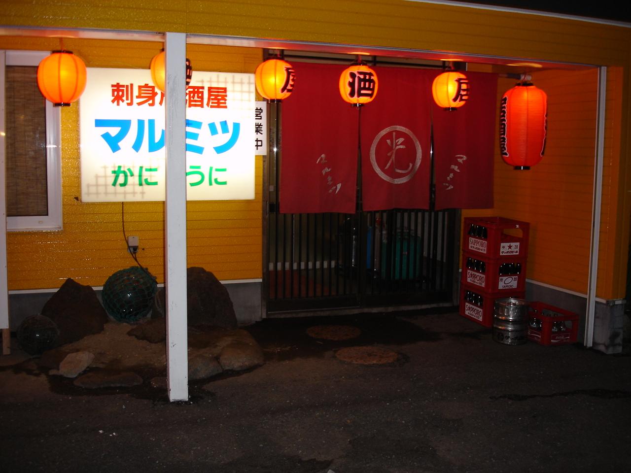 函館から3〜4時間掛かって宿泊地のルスツタワーへ到着。宿近くの居酒屋「マルミツ」で夕食。 -