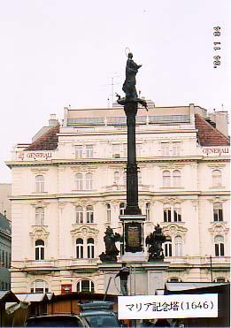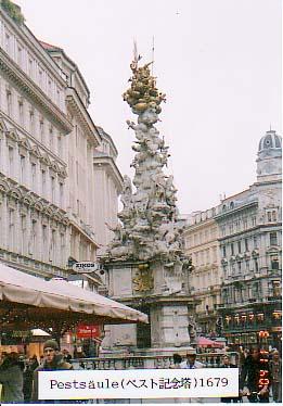 Pestsaeuleペスト祈念柱 1679年建設 この年、欧羅巴はペストに苦しめられた。死者は75000〜150000人といわれる。 -