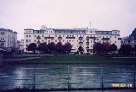 ホテルはザルツアッハ川に面して建つ豪華ホテル(写真)で、案内された部屋は3階のriver view側。