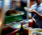 クレープを焼くプレートにパンのような生地を薄くのばして、バターのようなマーガリンのような油を用いて焼く。その上にスライスしたバナナをのせ、くるんでさらに焼き目をつける。焼き上がったローティを一口大に切り、発砲スチロールの入れ物にいれて、上から練乳をかける。砂糖も聞かれるが、これは余程の甘党でない限り、断らなければならない。