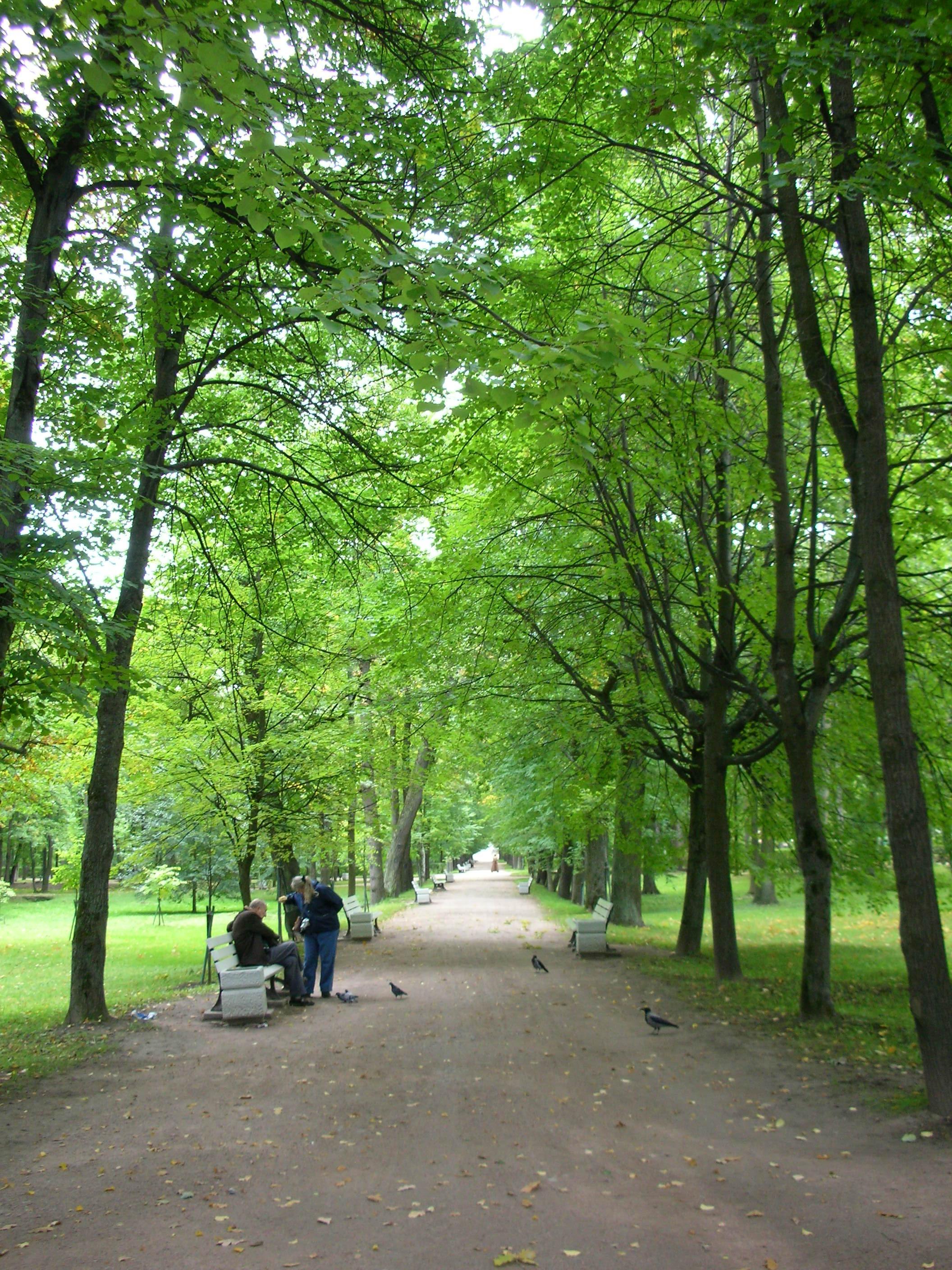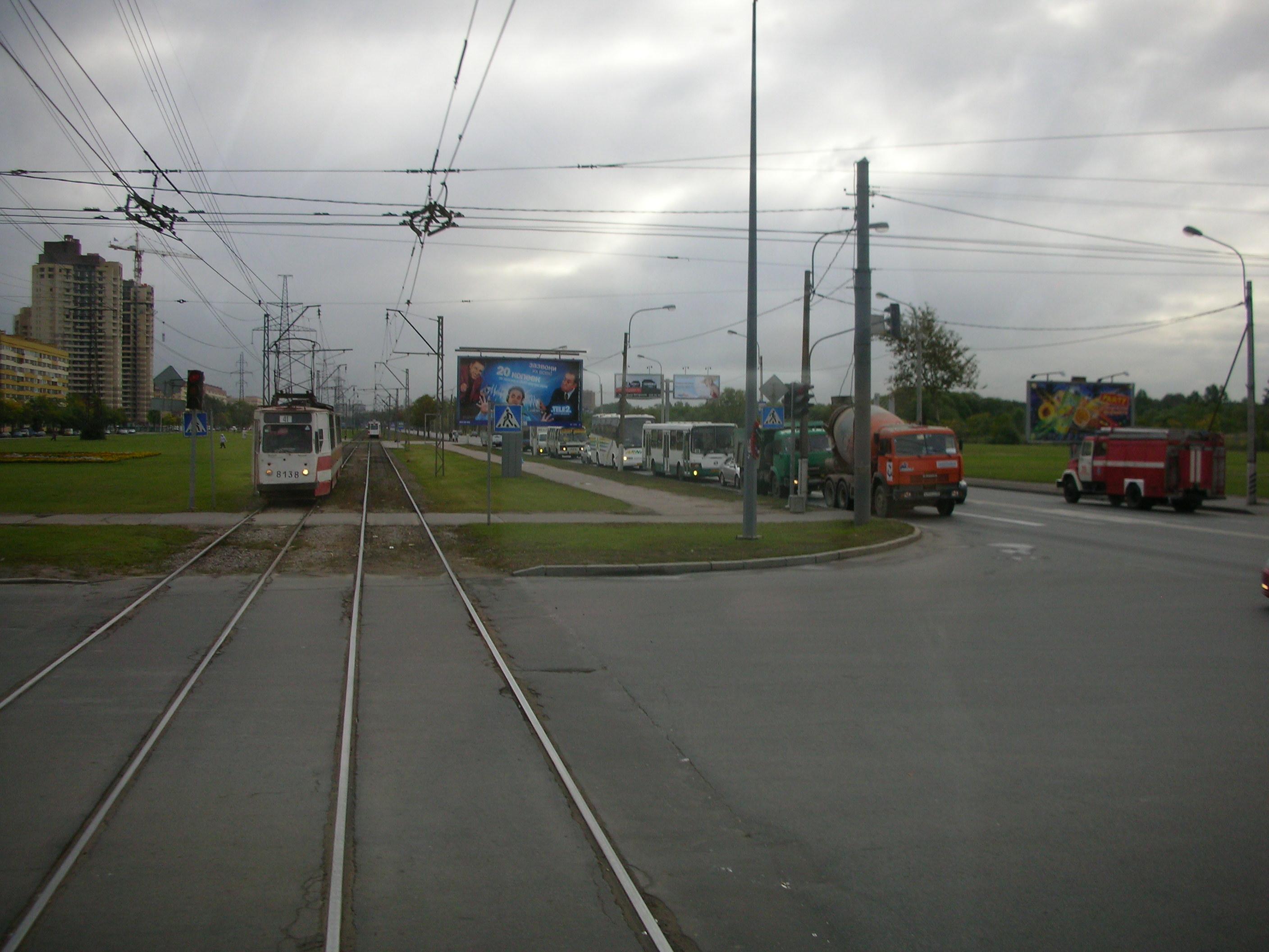 朝、サンクトペテルブルクよりペトロゴフに向けて出発。このような、電車の走るだだっ広い道を通って行きました。