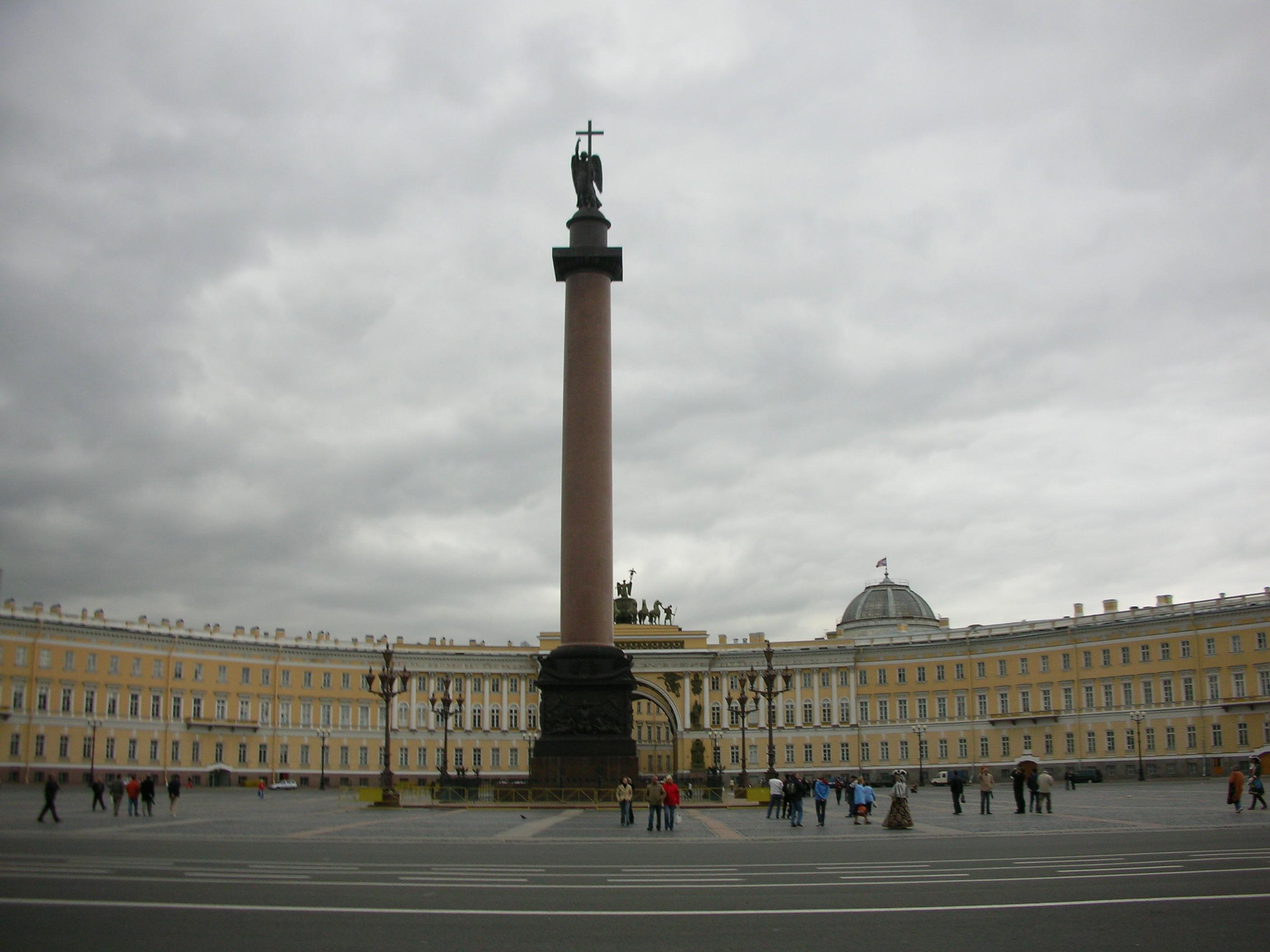 再びサンクトペテルブルクに戻り、エルミタージュ美術館へ。写真は目の前にある宮殿広場です。