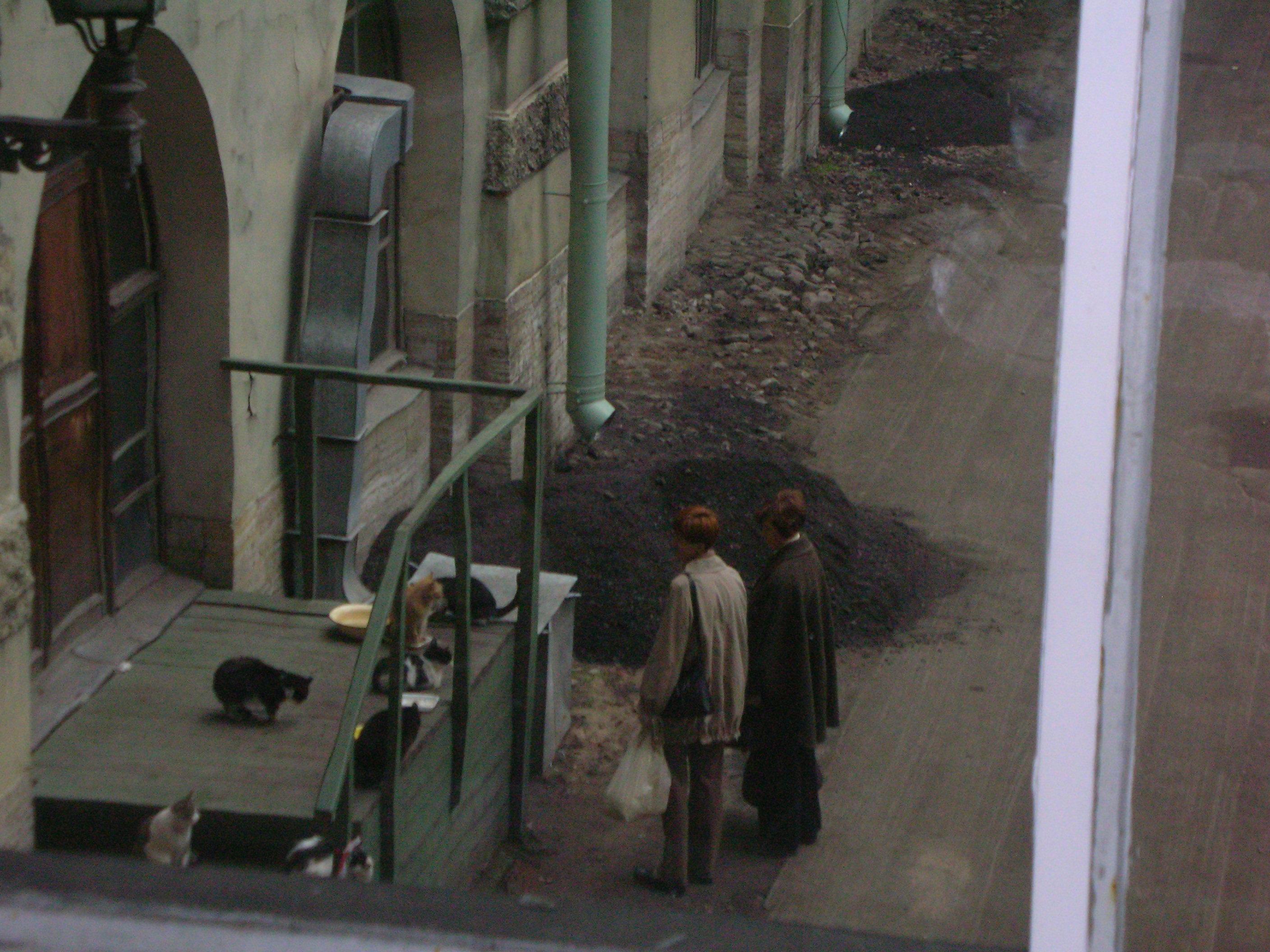 この猫たちはエルミタージュで飼われているそうです。ネズミ退治のためであり、猫のエサ代はエルミタージュの予算に組み込まれているそうです(笑)