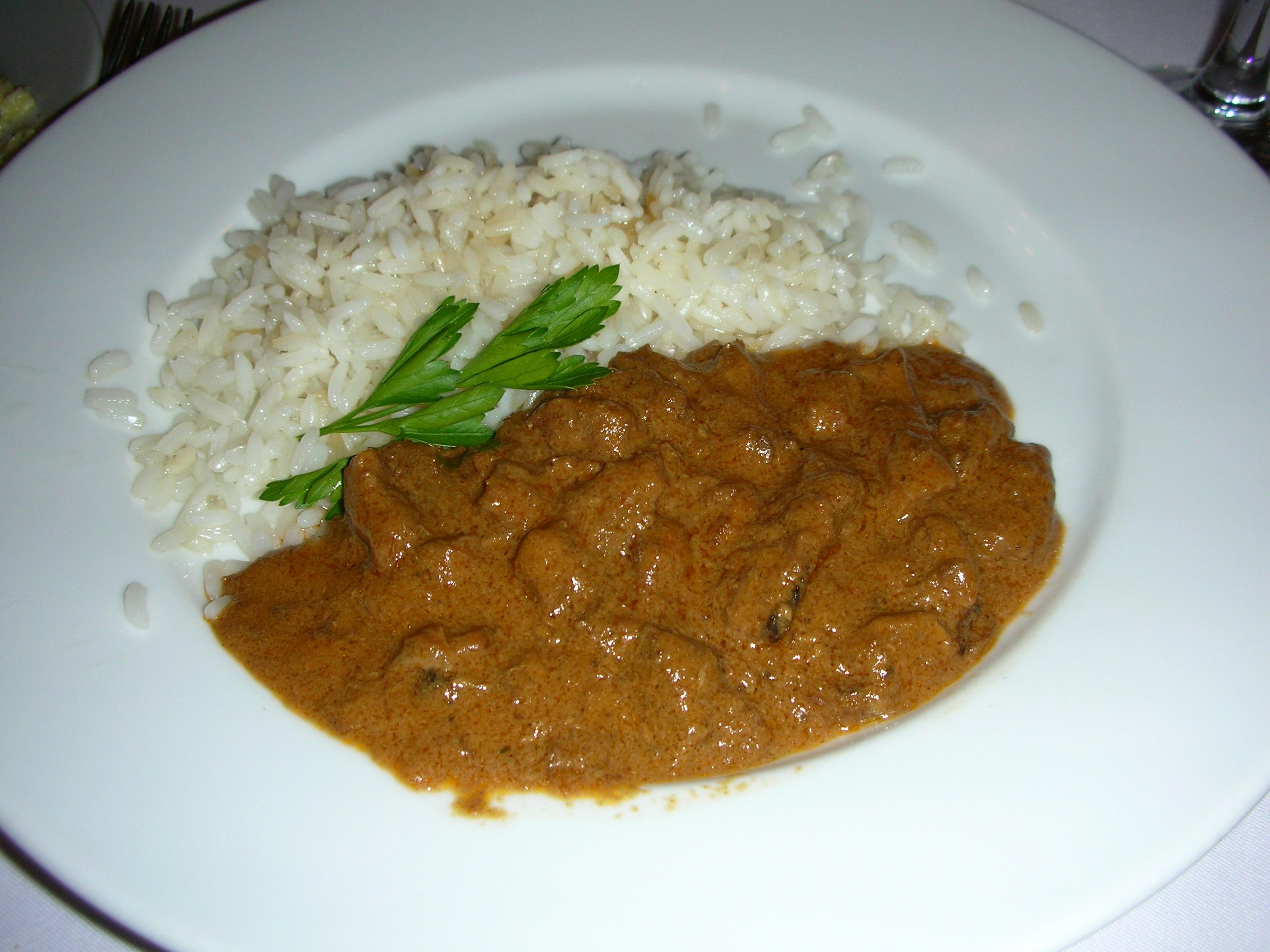この日の夕食は、ビーフ・ストロガノフでした。日本人好みの味です。