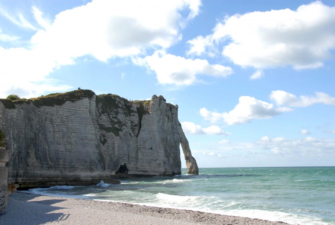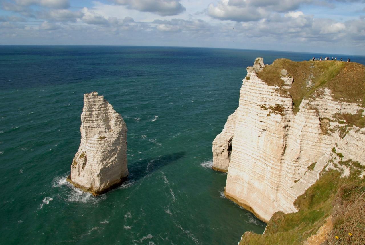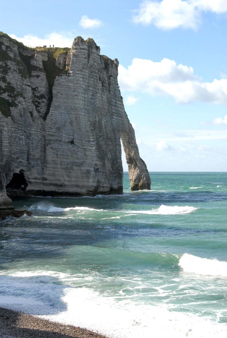 エトルタには2つの断崖がある。これは海に出て左方のアヴァル(Aval)の段崖方向への記録である。