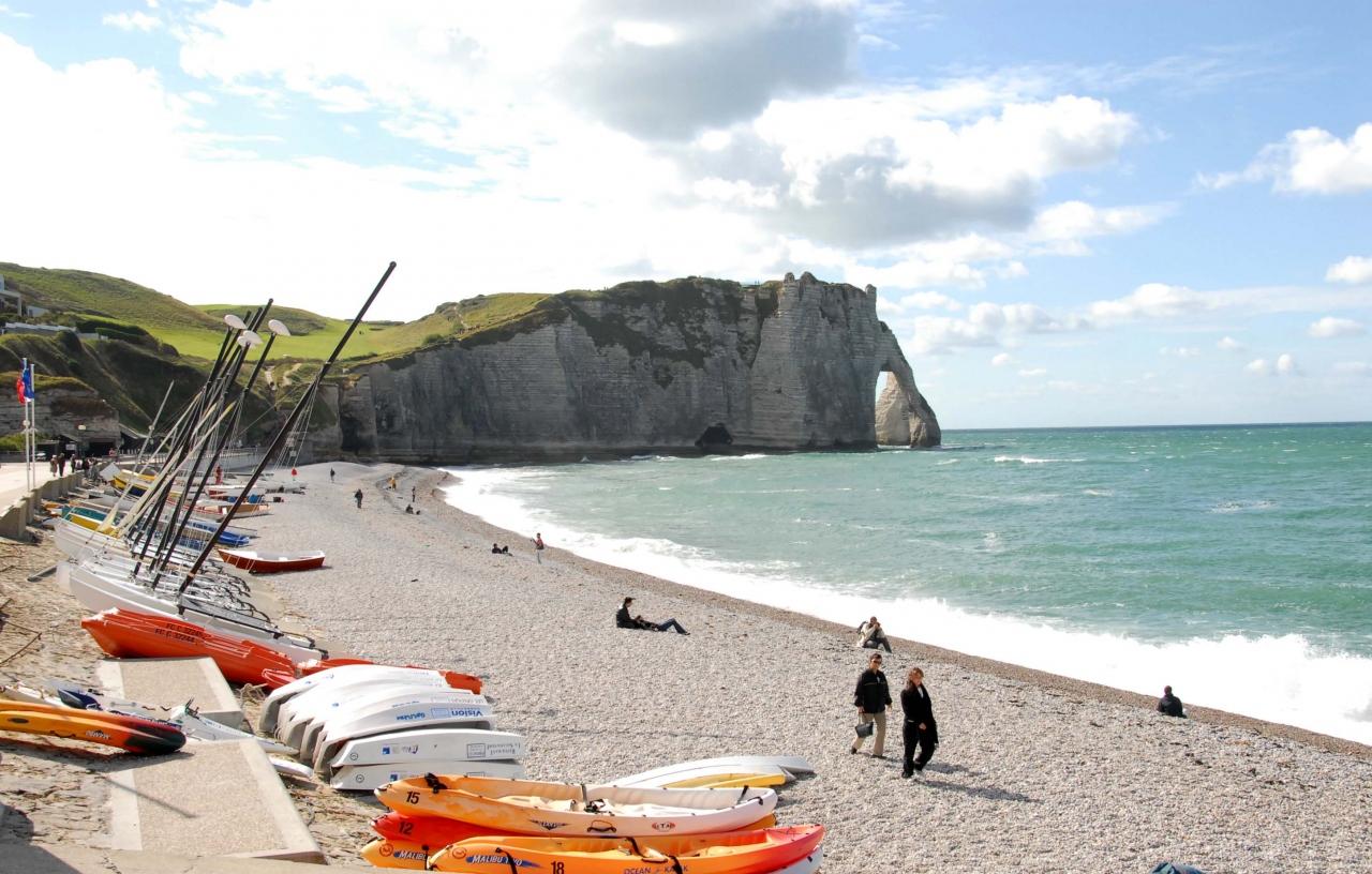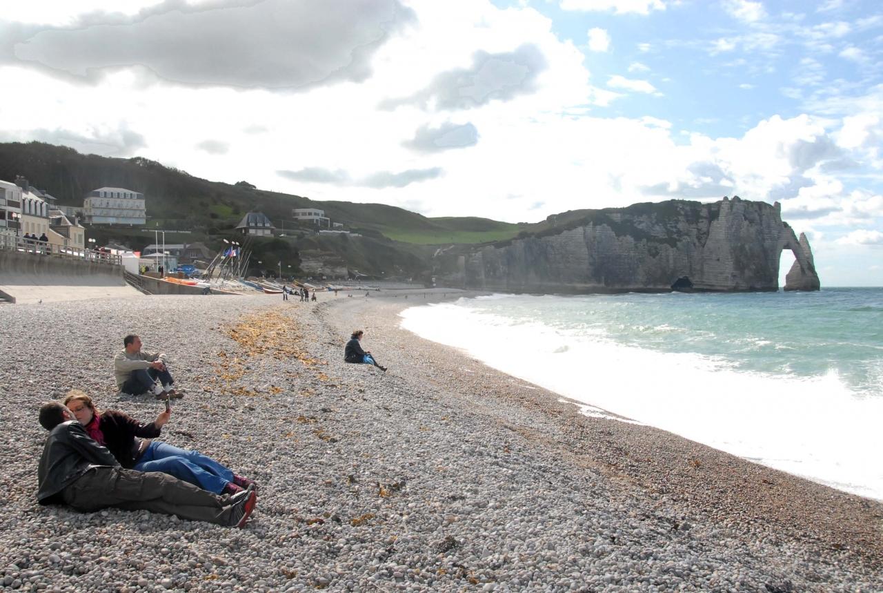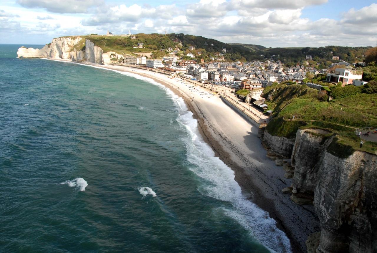 エトルタには2つの断崖がある。これは海に出て左方のアヴァル(Aval)の段崖方向への記録である。
