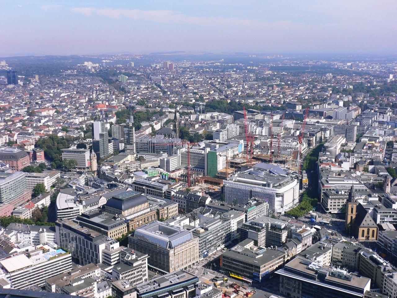 その後マインタワーに上りました。展望のある階からみた街なみです。