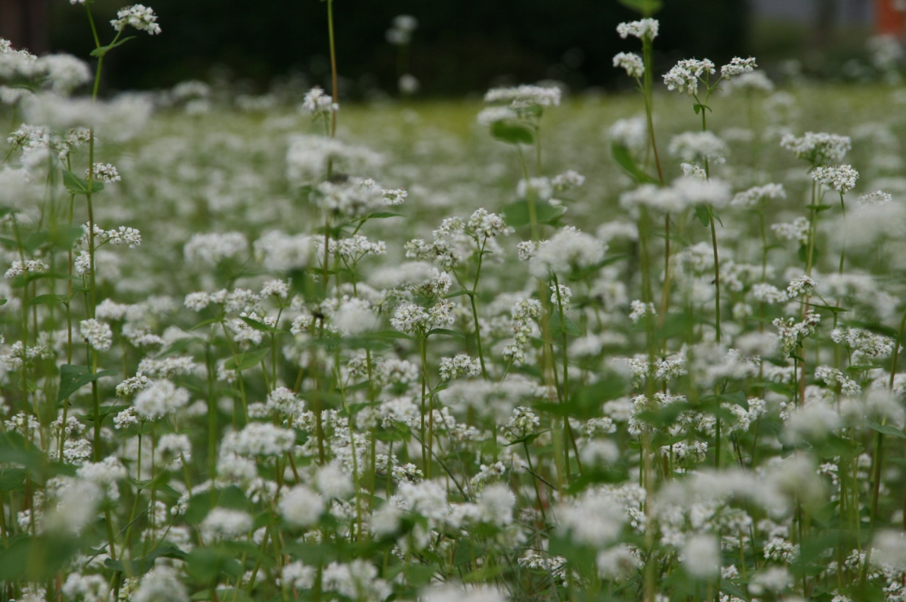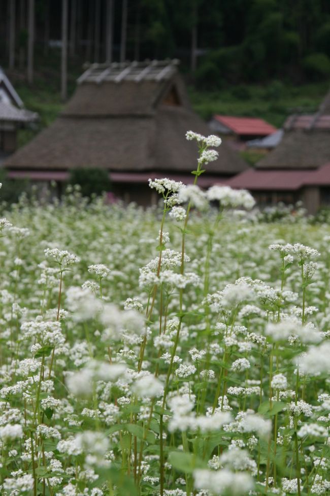 とっても素敵なお写真を拝見させていただきました。蕎麦の花と茅葺民家、素朴で純粋で引き込まれます。