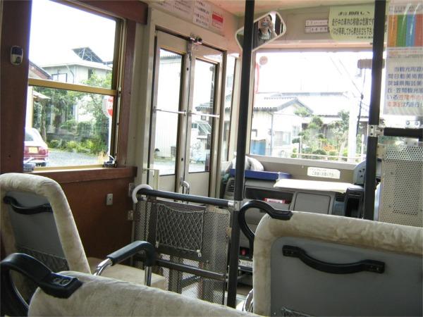乗り口は前です。正面のウインドウ前に”笠間市内地図”が置いてありもらえます。