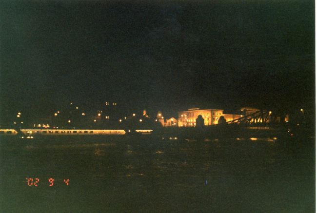 Vigadoの前の観光船発着所より夜景を見に観光船に乗った。ガイドさんが流暢に24ヶ国語であいさつとせつめいをするのにはびっくりした。英語のみでなく、日本語、フィンランド語も含まれていた。