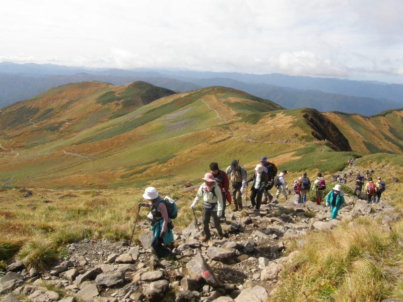 姥ヶ岳山頂付近の花畑には木道があります。花はすでに終わっていましたが…