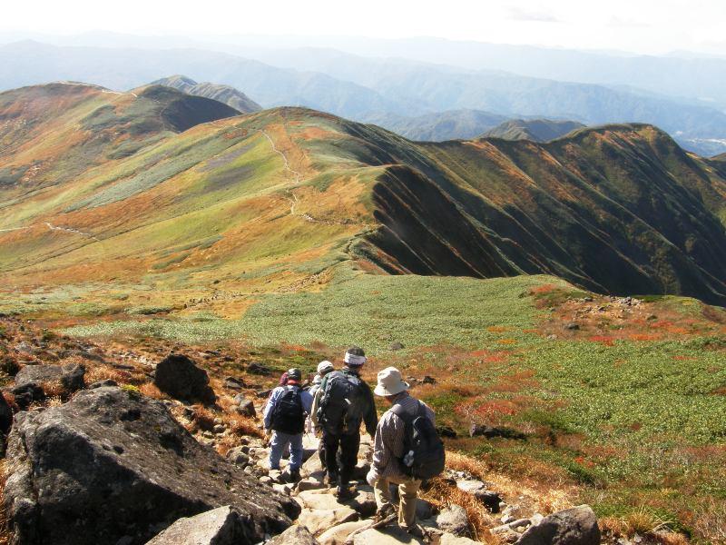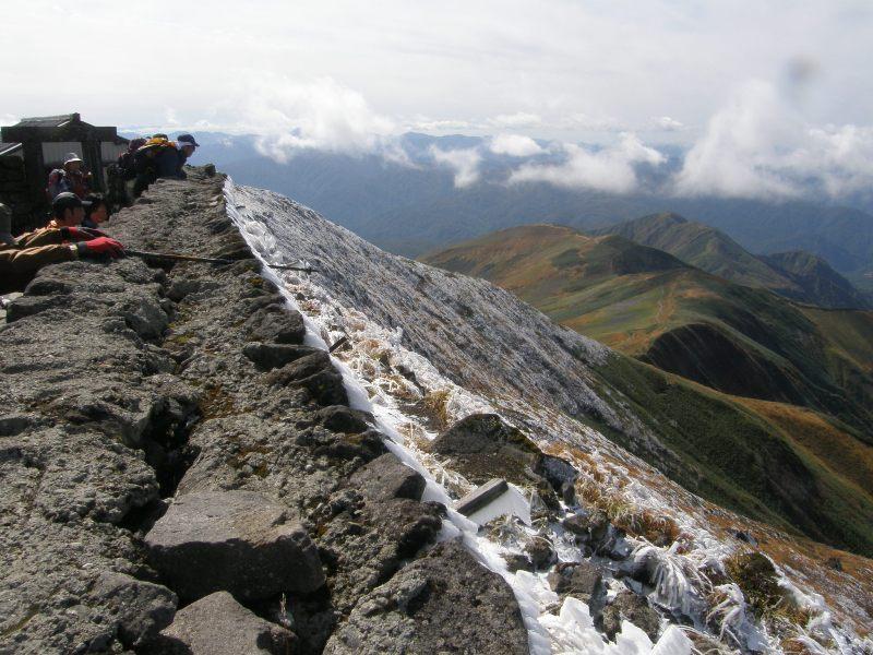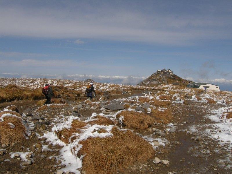 連れ合いの友人のグループと一緒に、お隣の山形県の月山に行ってきた。スキーで何度か行ったことがあるが、山頂まで行ったのは初めて。駐車場から見たときは山頂付近に雲がかかっていたが、リフト上駅に降りると晴れ渡り、山頂付近が雪でうっすらと白くなっているのが見えた。