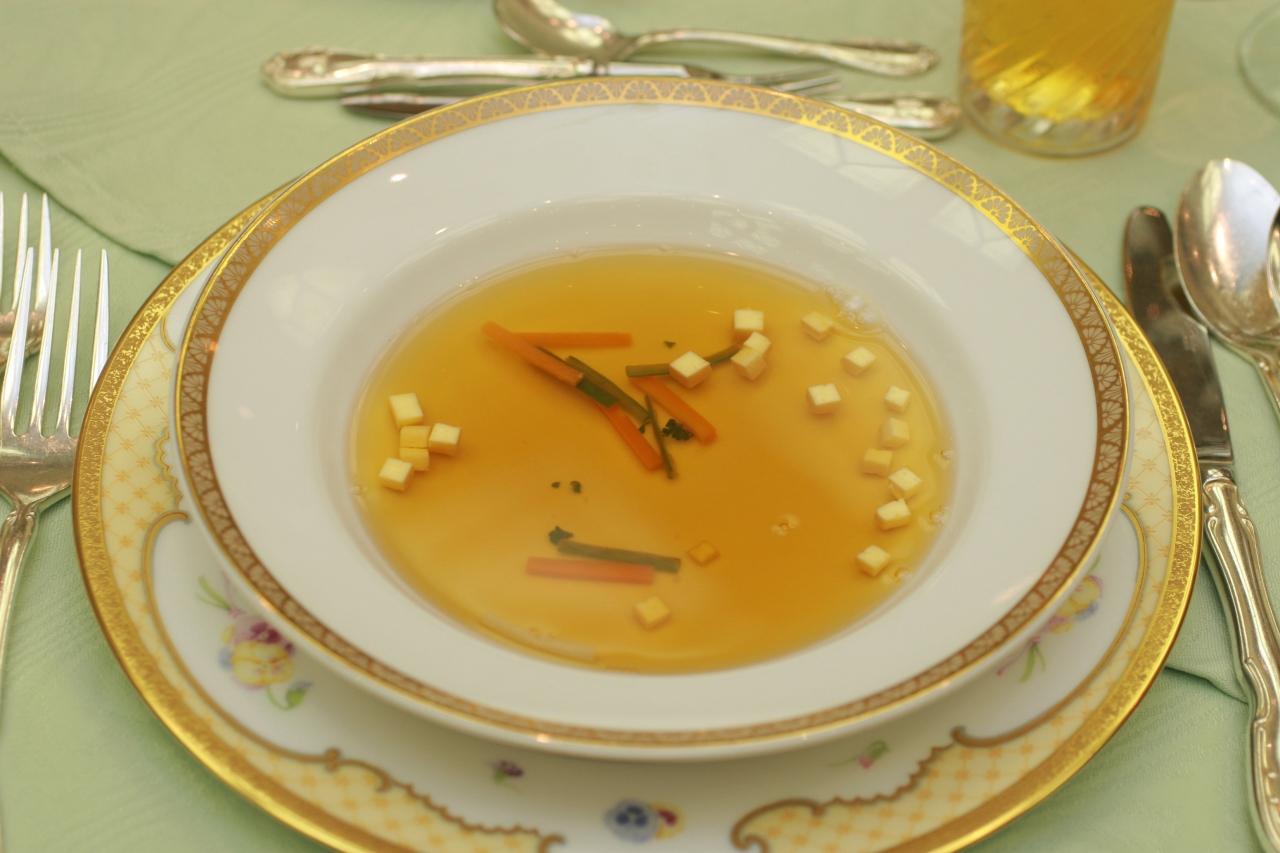 コンソメスープ 細切り野菜とロワイヤルの浮身入り
