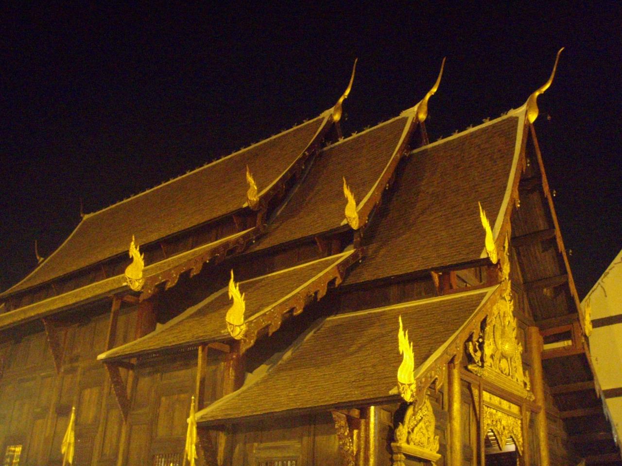 途中、ワット・パンタオでお参り。チーク材で建てられていて、夜も美しい姿が引き立っています。