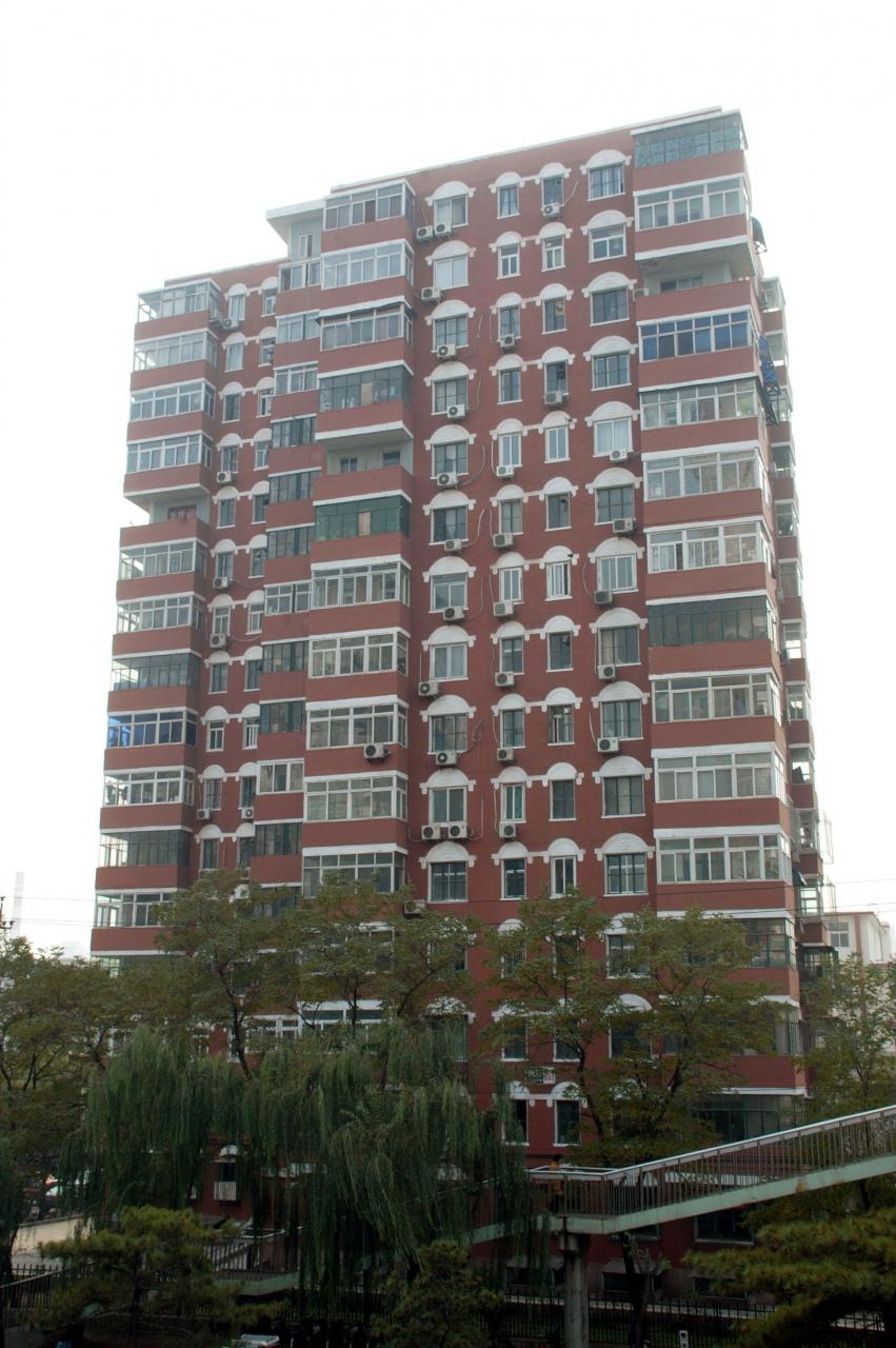 これまでズズ汚れた水色だったマンションが、茶色で塗り立てのマンションに変身していました。 -