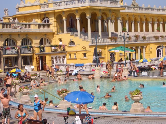 さて、続いてやってきたのがこちら。黄色い壁が特徴的なセーチェニ温泉です!!セーチェニは温泉としては欧州最大の規模を誇る建物とのこと。