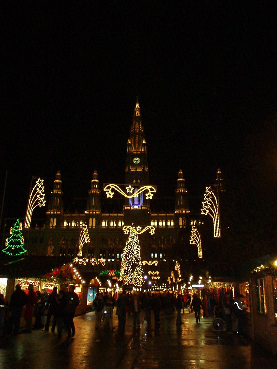 市庁舎前の広場ではクリスマス市が始まっていました。