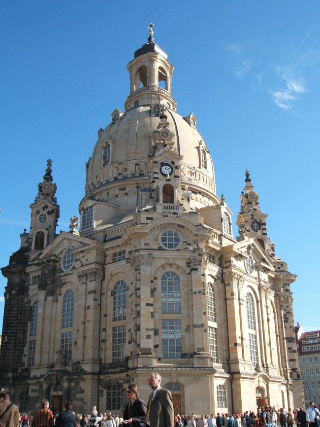 まずは10年もの歳月を経て2005年10月によみがえった聖母教会へ。すごい人だかりでした。ドイツ国内からも観光客が絶えないそうです。 -