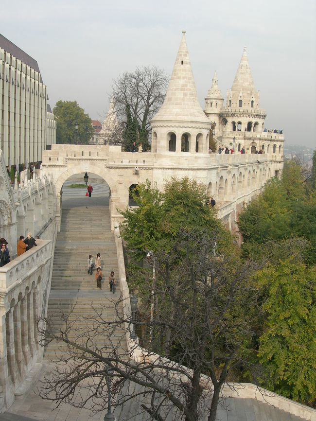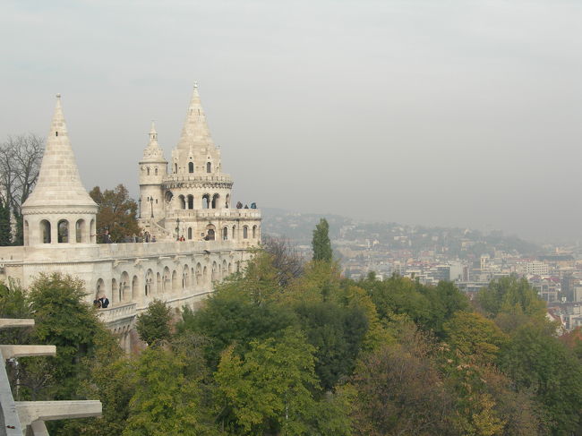 王宮の丘にある漁夫の砦。ドナウ川と街を見渡すビューポイントなので大勢の観光客で賑わっています。広場にあるのは聖イシュトバーンの騎馬像。午前中は薄曇りながら青空も見えました。