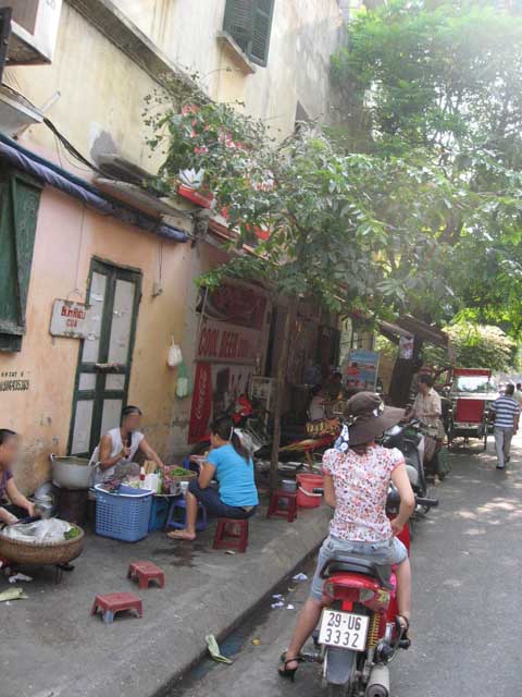 ハノイの朝は、比較的早い。日が昇ると、歩道にフォーの屋台などが並ぶから、人も家から出てきて、朝食をとったりしている。
